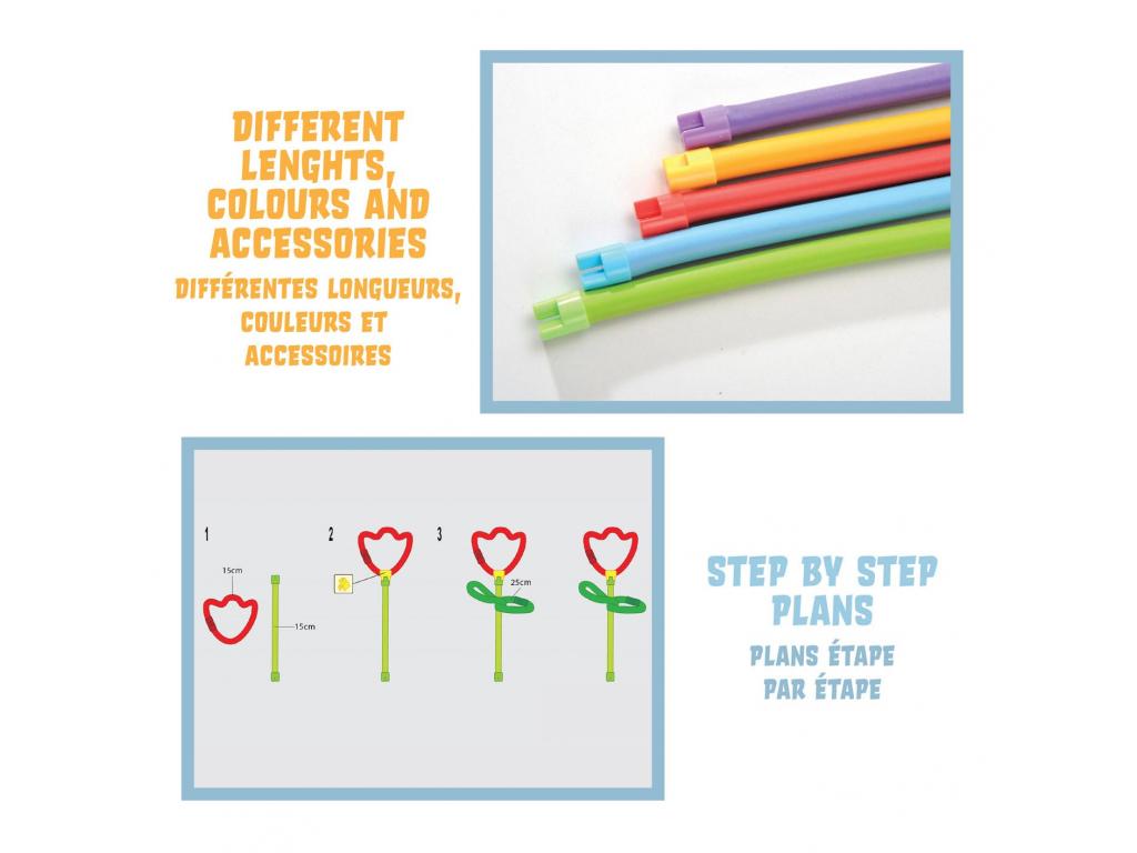 A Spaghetteez puha, rugalmas pálcikák, amelyek könnyen összeilleszthetők és amelyekkel sok szép alkotás készíthető.