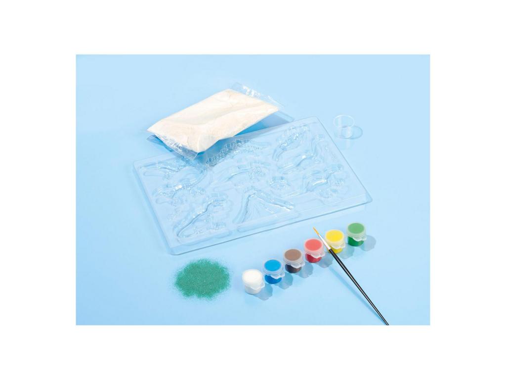 Kézműves készlet gipszkiöntéshez, 9 őskori (dínó) alakzat elkészítéséhez és festéséhez. Alkalmas 5 éves kortól.