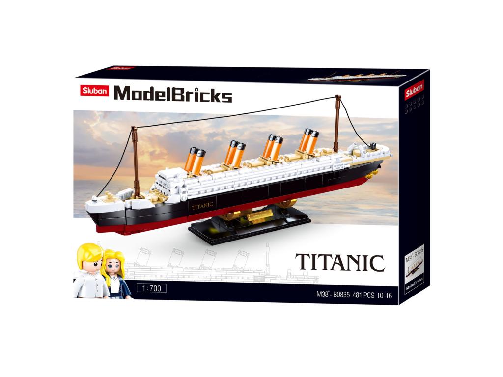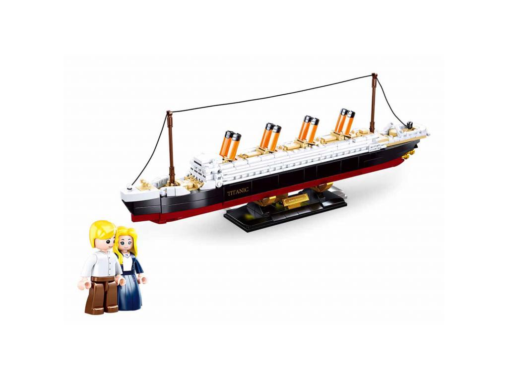 Sluban Titanic hajó. 1: 700 méretarány, 481 darab. A készlet 2 figurát (Jack és Rose) is tartalmaz. A Sluban építőelemei más márkák építőelemeivel is kompatibilisek.