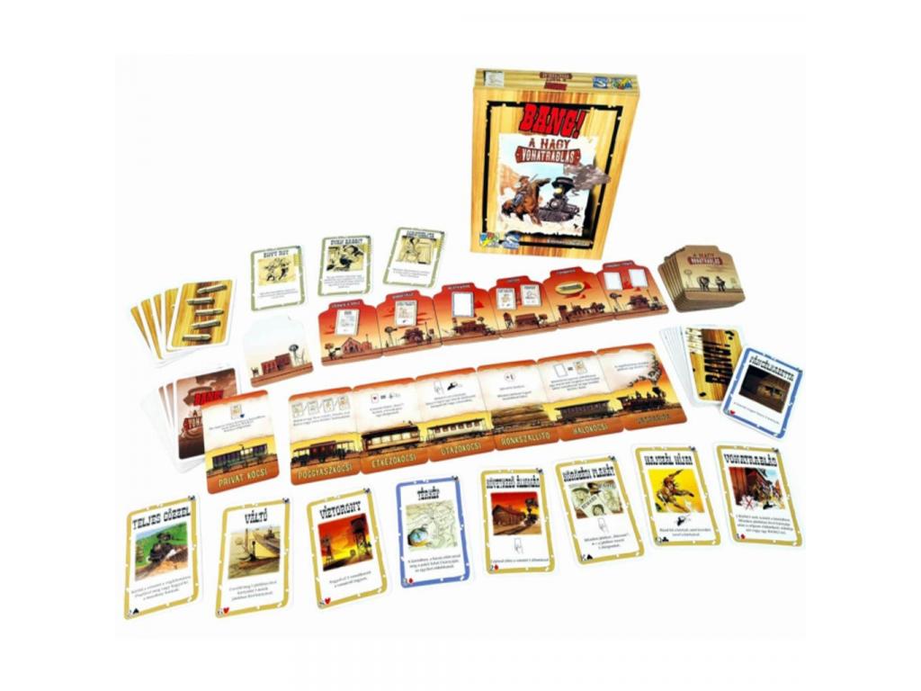 Azonban a játék élményét tovább fokozza a "Bang! A nagy vonatrablás" kiegészítő. Ebben a bővítésben a játékosok nem csak a többi cowboyval veszik fel a harcot, de egy vadonatúj mechanizmussal, a vonatrablással is megismerkedhetnek. A kiegészítőben a játékosok egy vonatot rabolhatnak ki, és a zsákmányból szerzett kincsekkel, fegyverekkel és különleges tárgyakkal gazdagodhatnak. Ezeket a tárgyakat aztán felhasználhatják a többi játékos ellen, így még több stratégiai lehetőség áll a rendelkezésükre. Ezen kívül új karakterek is megjelennek, akik saját egyedi képességeikkel teszik még izgalmasabbá a párbajokat.
