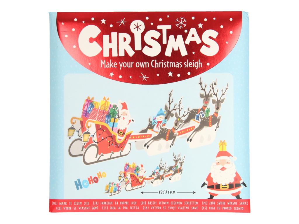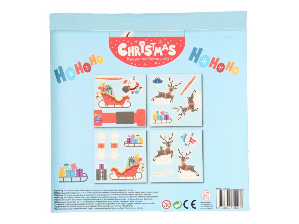 Karácsonyi szánkészítő készlet kartonból. A szán méretei: 45x14x4 cm. Alakalmas 3 éves kortól.