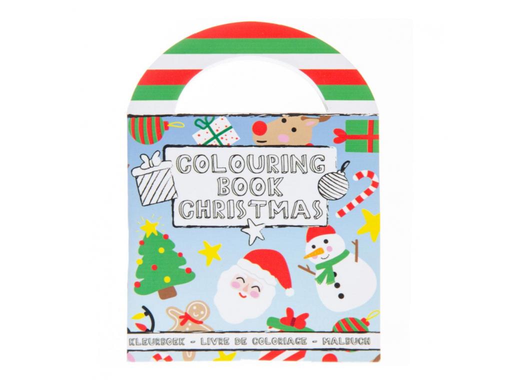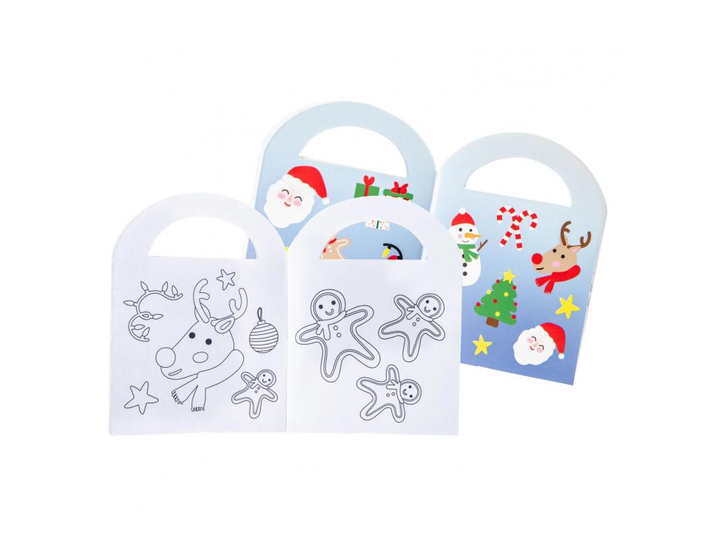 Mini karácsonyi színezőkönyv karácsonyi matricákkal. A füzet mérete 13 x 9,5 cm.