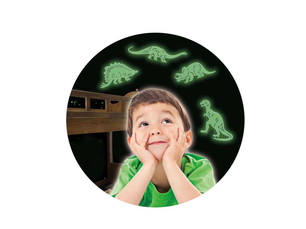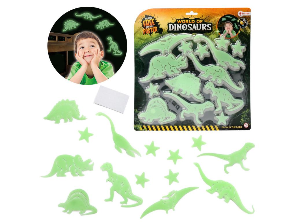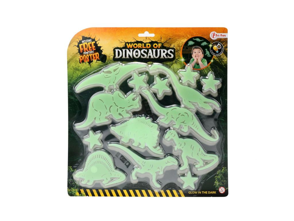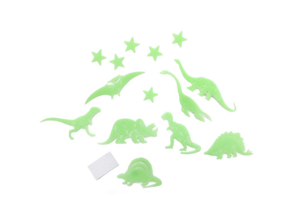 8 világító dinoszauruszból és 6 világító csillagból álló készlet.