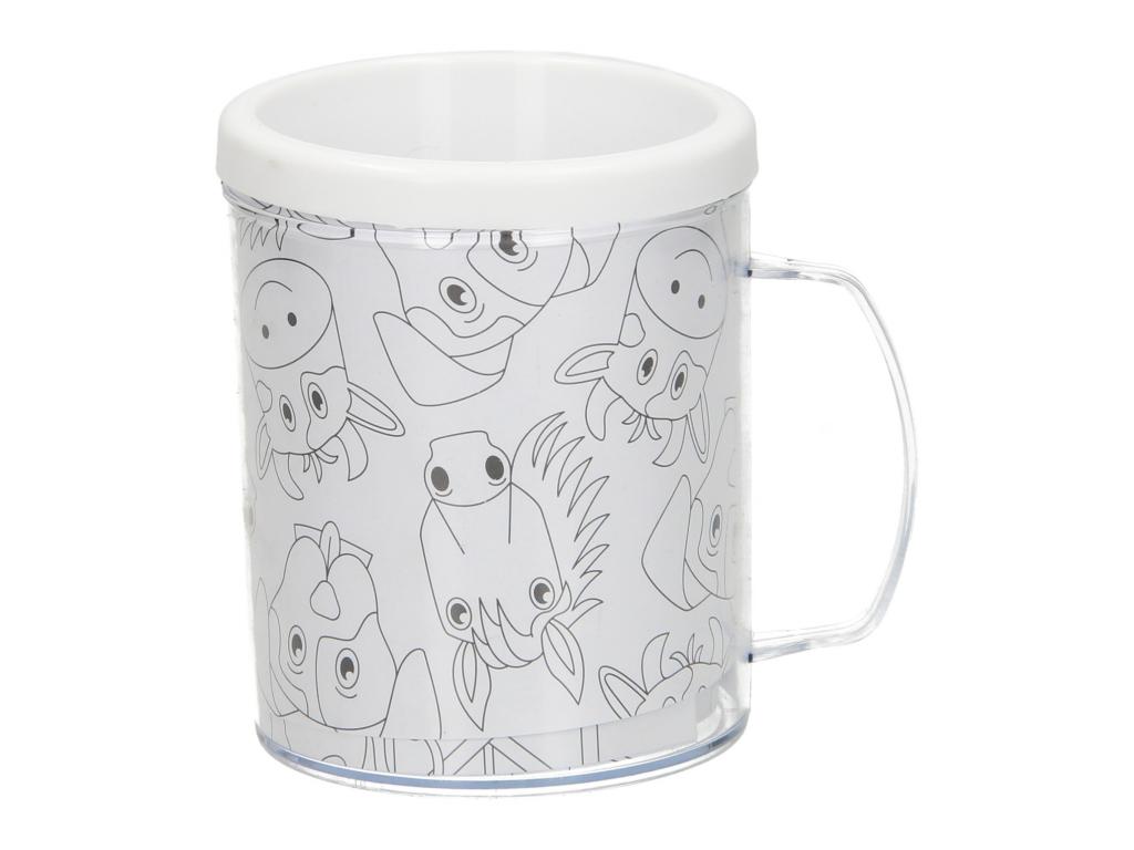 Színezze ki saját műanyag bögréjét ezzel a teljes készlettel. A készlet egy dupla falú bögréből áll, amely közé egy színező lapot helyezhetsz. A bögre 3 színezőoldalt tartalmaz, amelyeket cserélhetsz. A szinező eszközök nem tartoznak a csomaghoz. A bögre nem alkalmas mosogatógépbe vagy mikrohullámú sütőbe.
