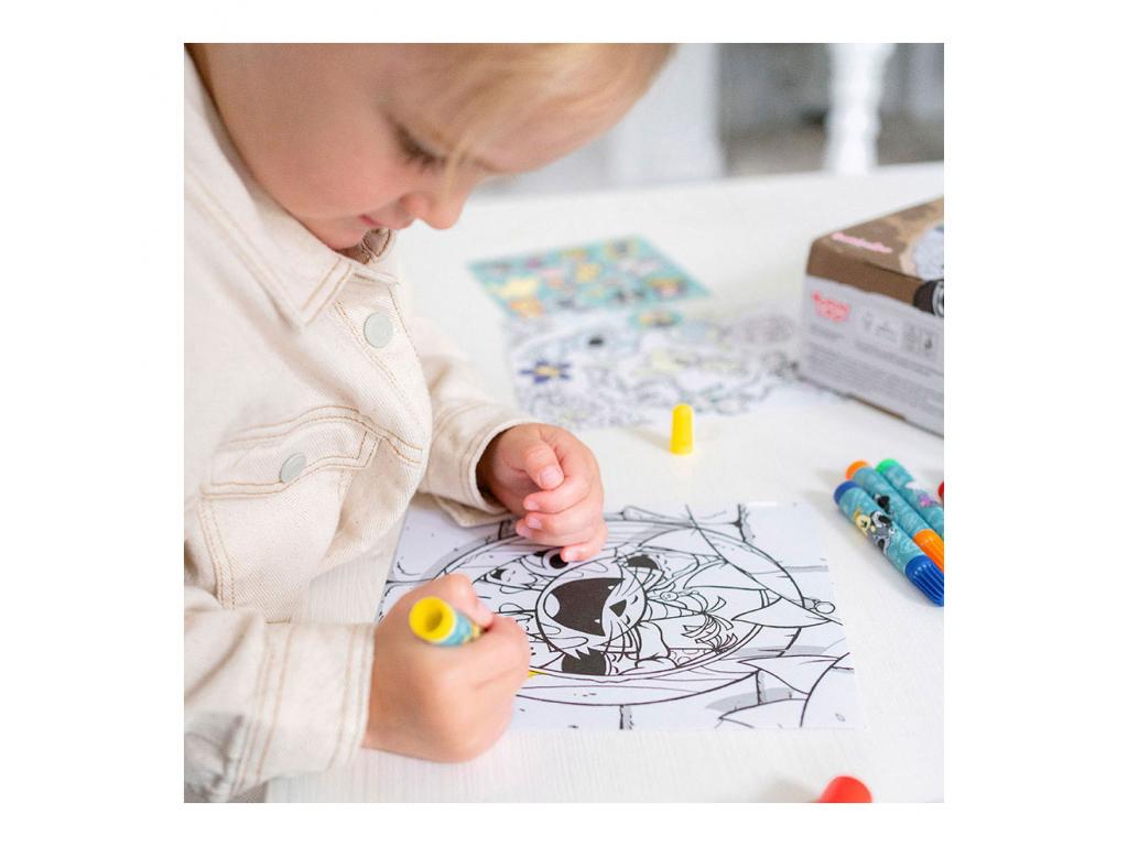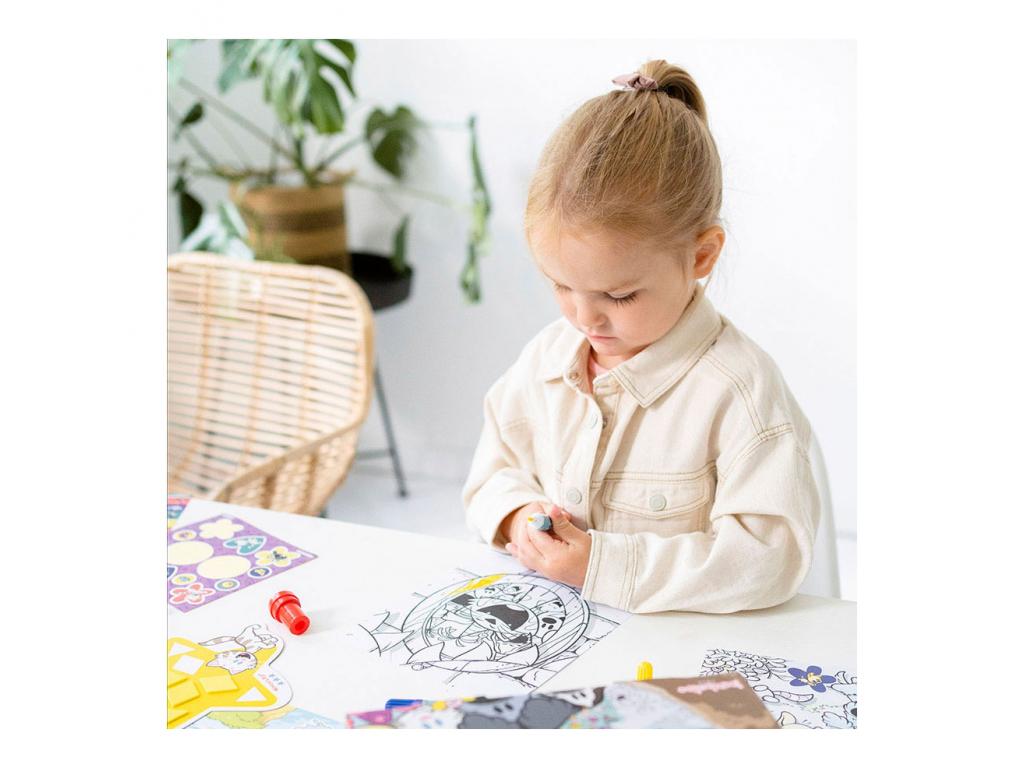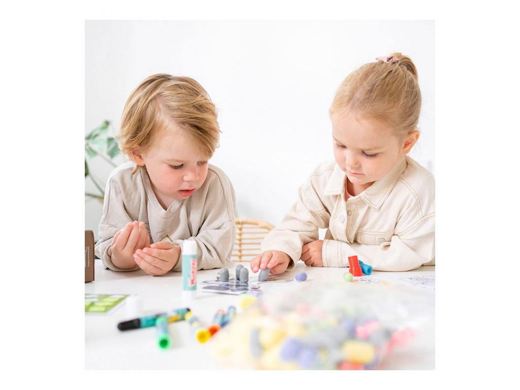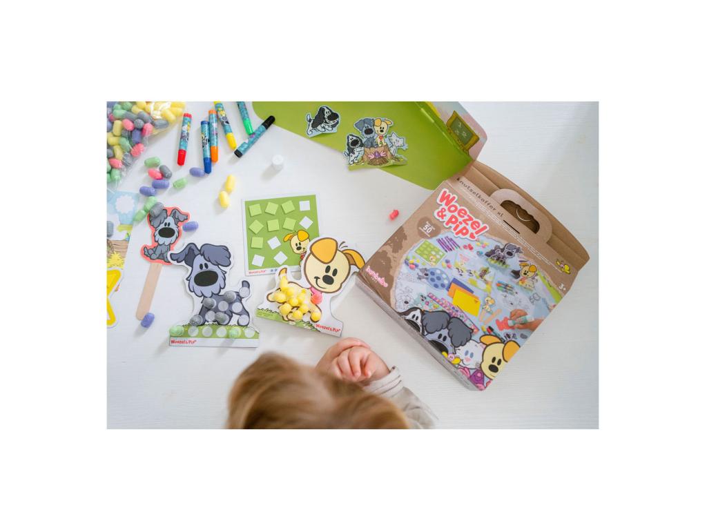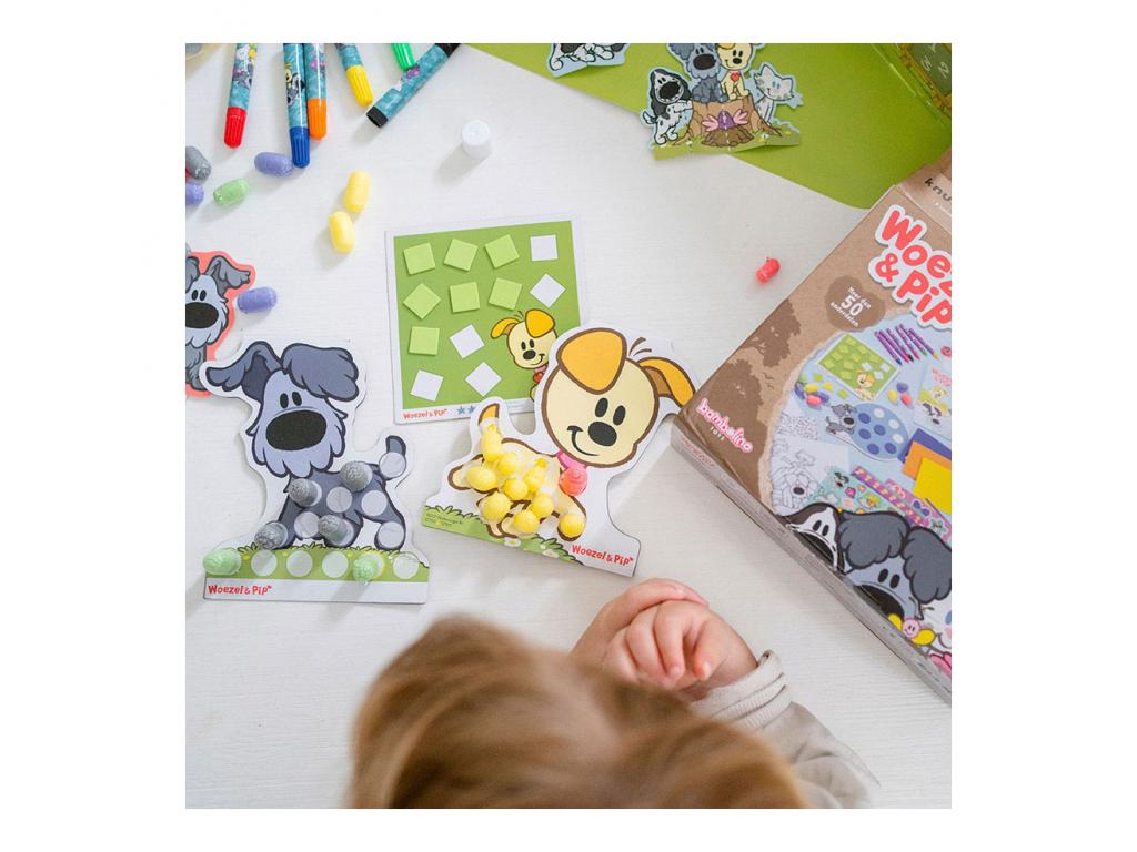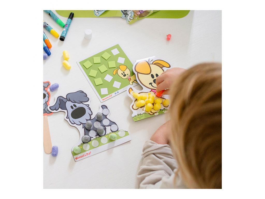 Ez a Woezel és Pip kézműves készlet több mint 50 darab kiskutyás kiegészítőt tartalmaz színező és kézműves szórakozáshoz. Tartalom: 2 jégkrémpálca, ragasztópálca, 8 ragasztóforma, 2 rögzítő matrica, 10 hajtogatható alakzat és karton háttér, 8 karton kártya, 46 habszivacs matrica, 6 viaszkréta, 6 filctoll, 4 matricalap, 2 öntapadós bélyegző és 5 színező sablon.