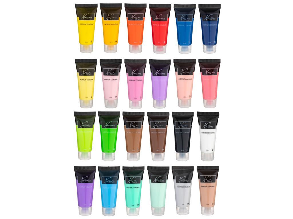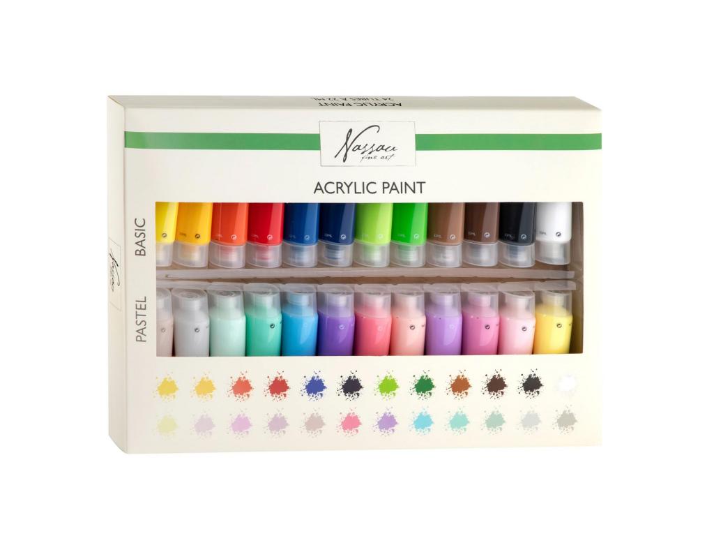 Nassau akrilfesték szett, 24x22 ml tubus, alap+pasztell színek