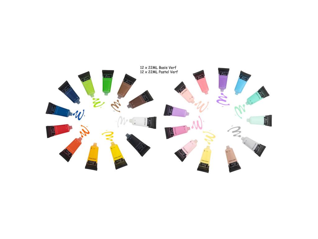 A magas minőségű művészi munkához kiváló kellék ez az akrilfesték készlet, mely 12 féle alap és 12 féle pasztell színárnyalatú festéket tartalmaz. Összesen 24 db x 22 ml-es tubusban. Gyorsan száradó vízbázisú akrilfesték, használható papír, fa és vászon felületeken. Használat után az ecsetet alaposan mossuk ki.