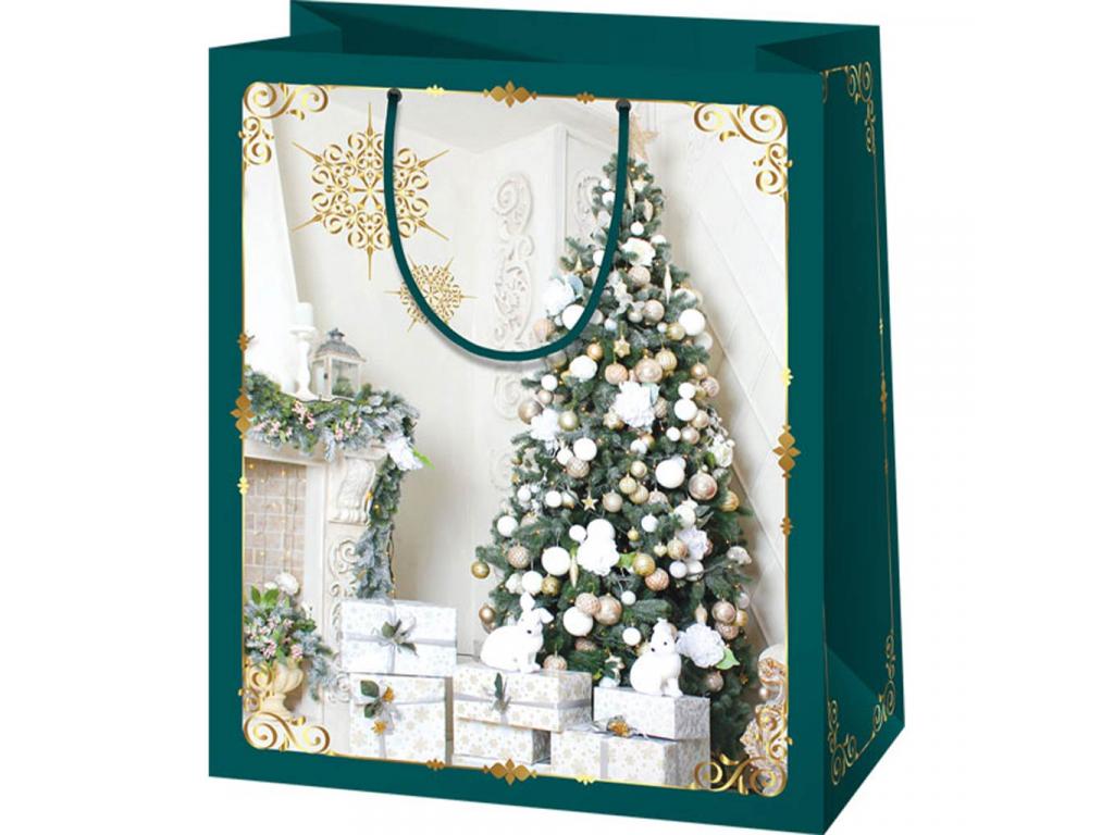 Karácsonyfa mintás nagy méretű exkluzív ajándéktáska 27x14x33cm
