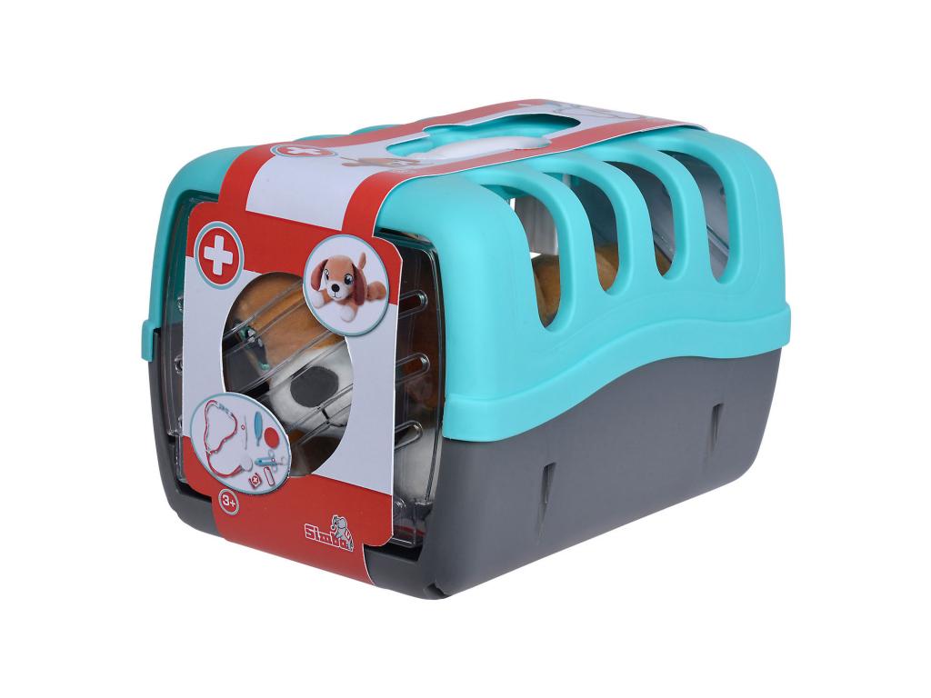 Kedves kis plüss kutya hordozóval és 7 db orvosi kiegészítővel. A kutya mérete kb 24 cm.