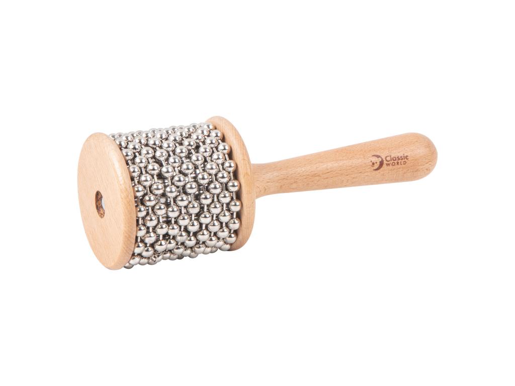 Fából készült ütős hangszer (gyöngyrázó). Mérete 6*17 cm