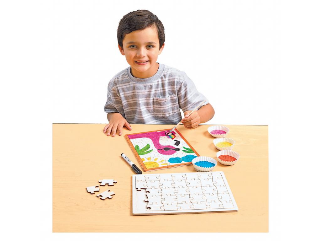 6 db-os fa kirakó készlet. 1 lap 35 db puzzle darabot tartalmaz,melyet saját elképzelésed szerint színezhetsz vagy festhetsz ki.