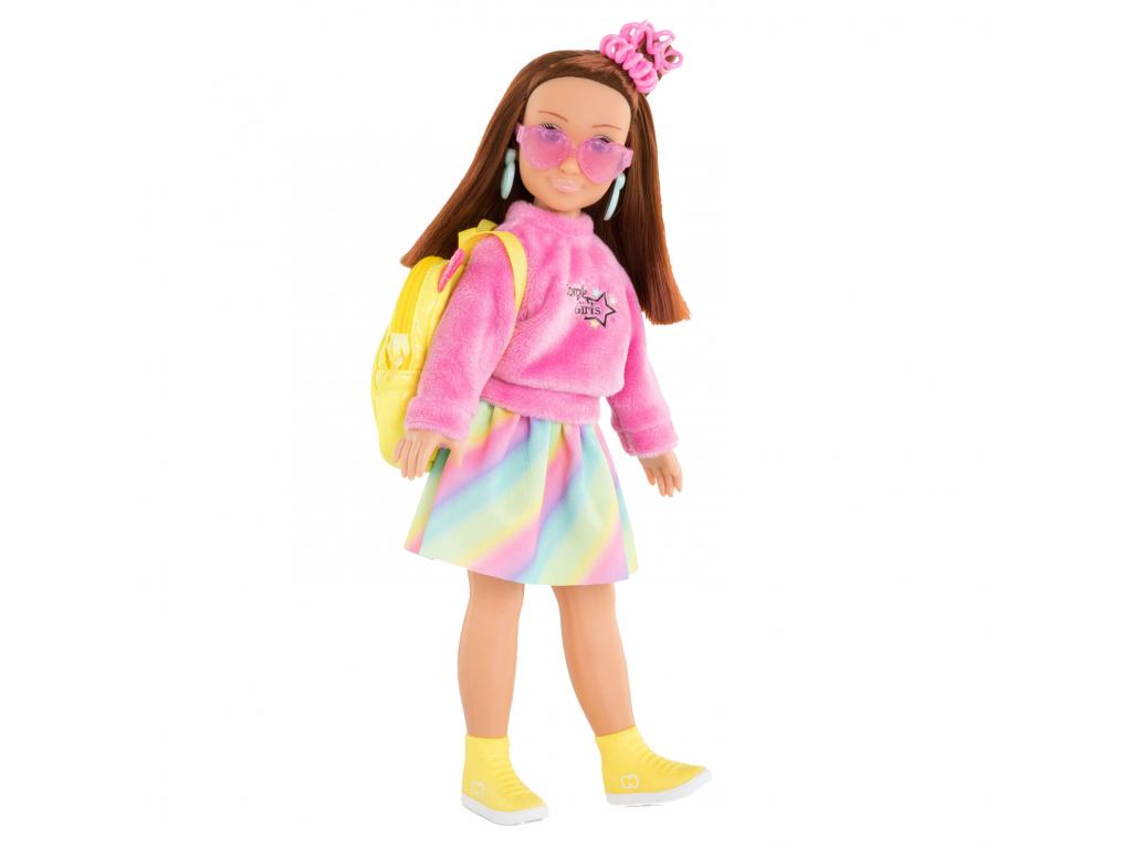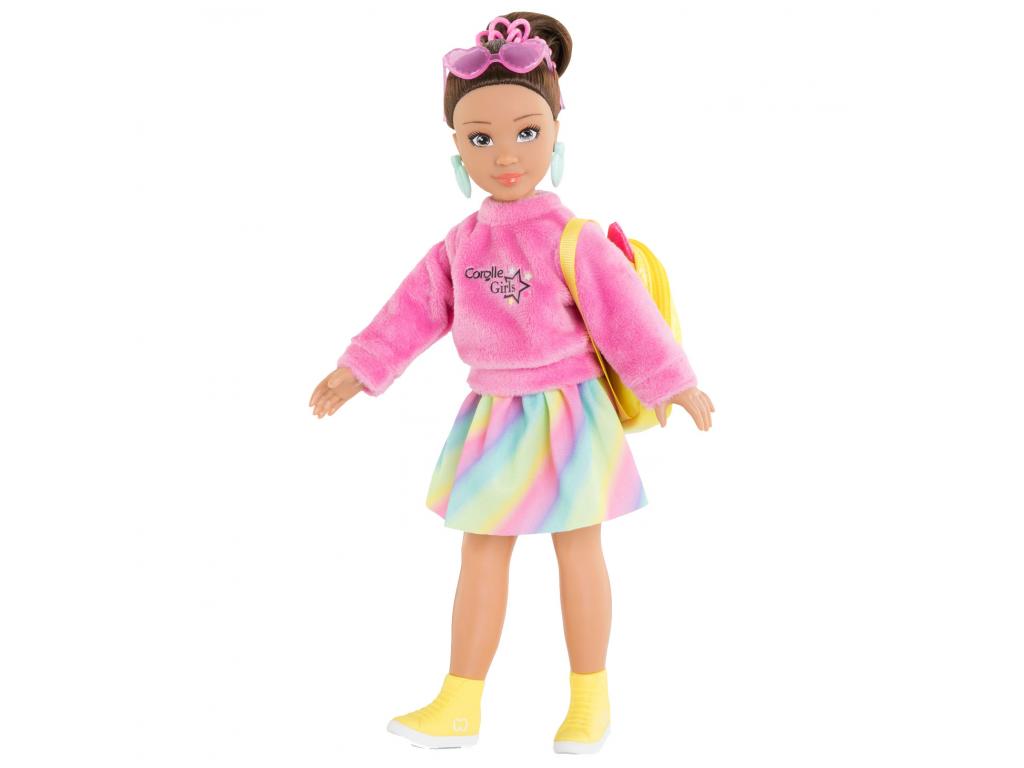 A szett tartalma : 1 db pulóver, 1 db szoknya, 1 pár fülbevaló,1 hajgumi, 1 napszemüveg, 1 hátizsák, 1 pár tornacipő. A szett 28 cm-es corolle girls babákhoz alkalmas. Az ár a babát nem tartalmazza.
