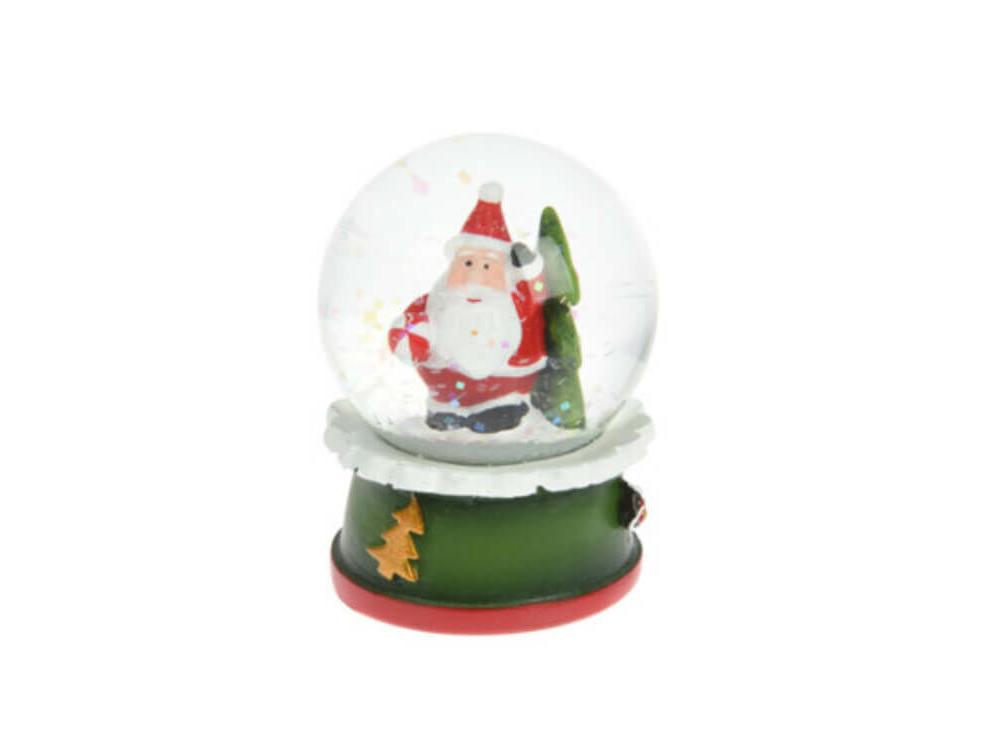 Hógömb Mikulás fenyőfával, zöld alaptesten