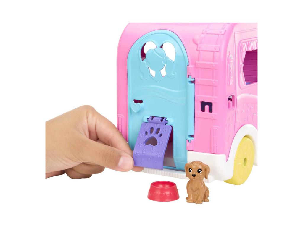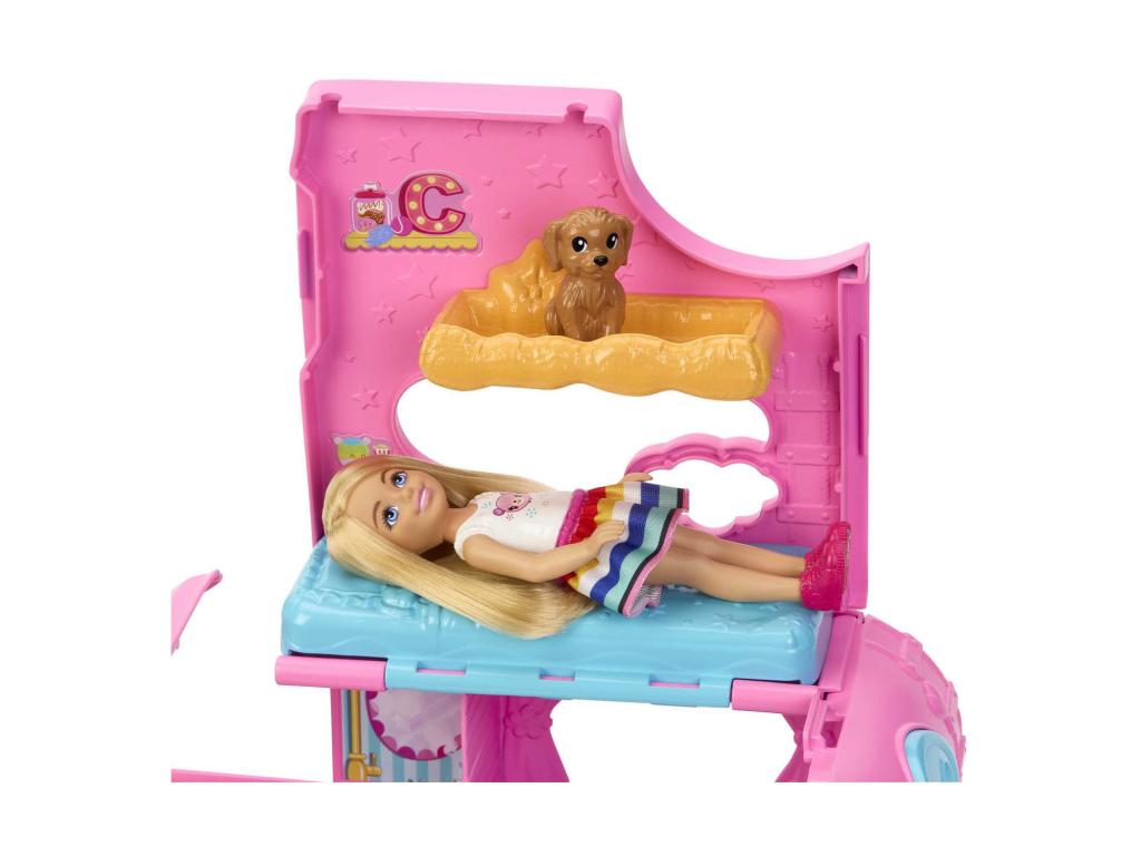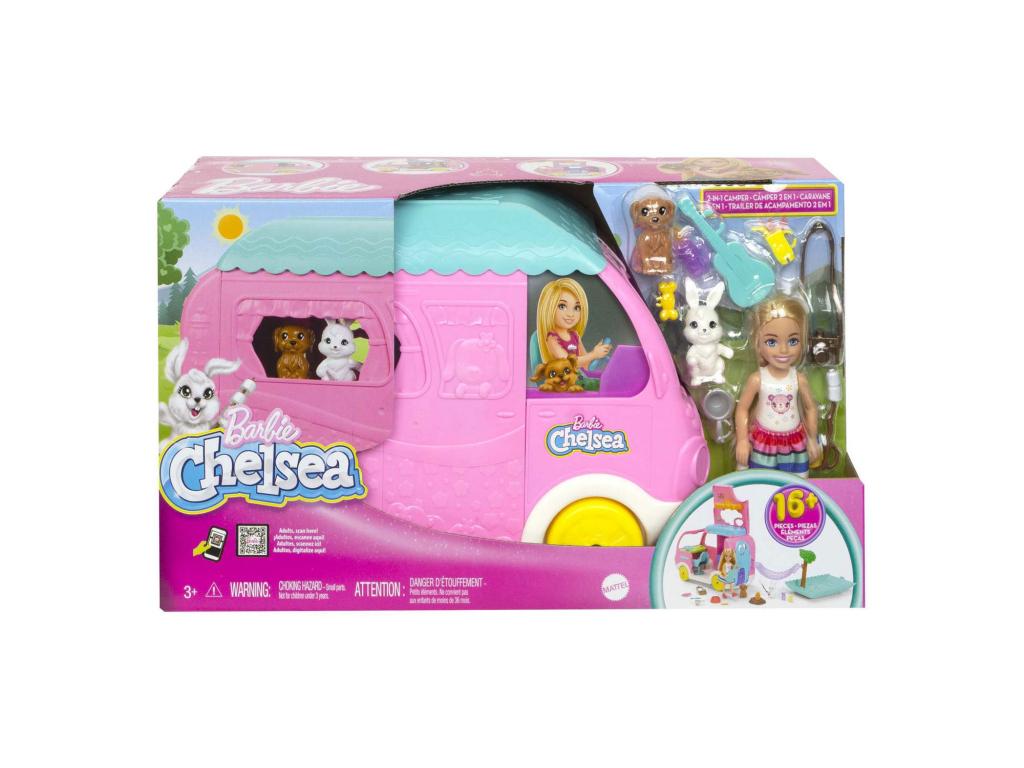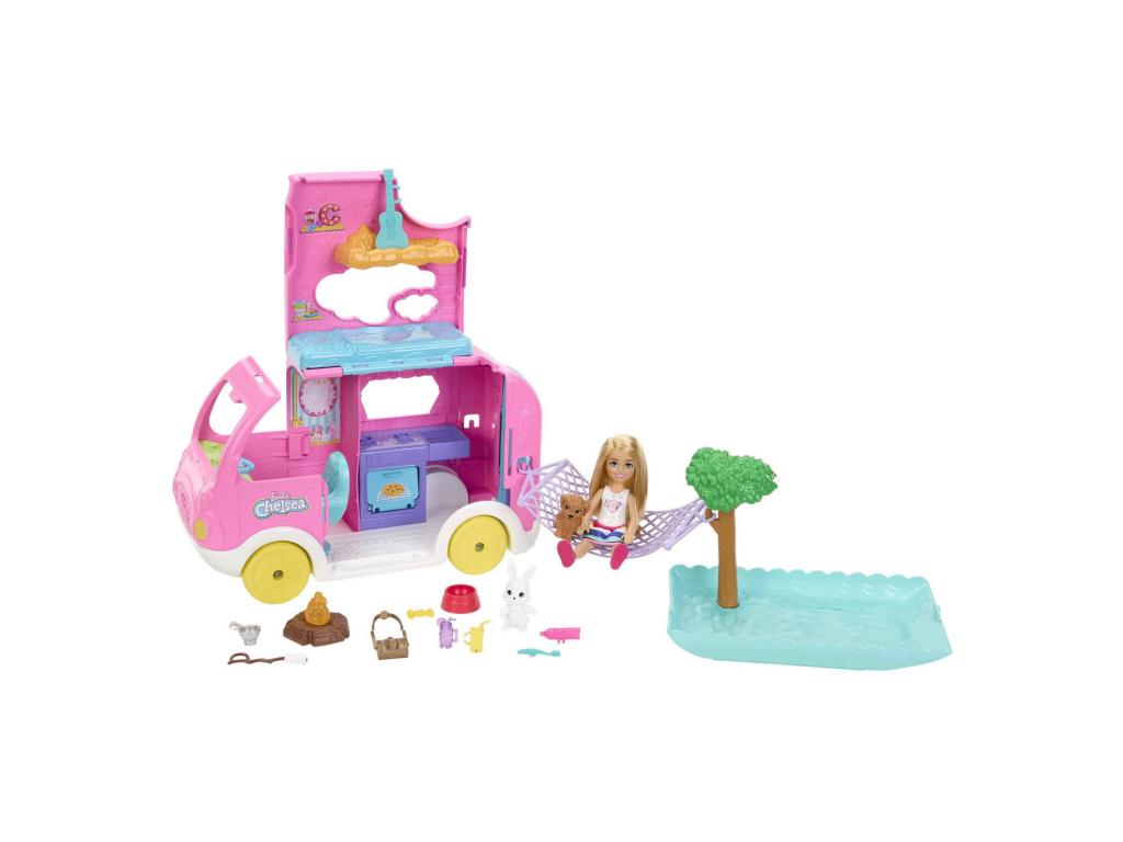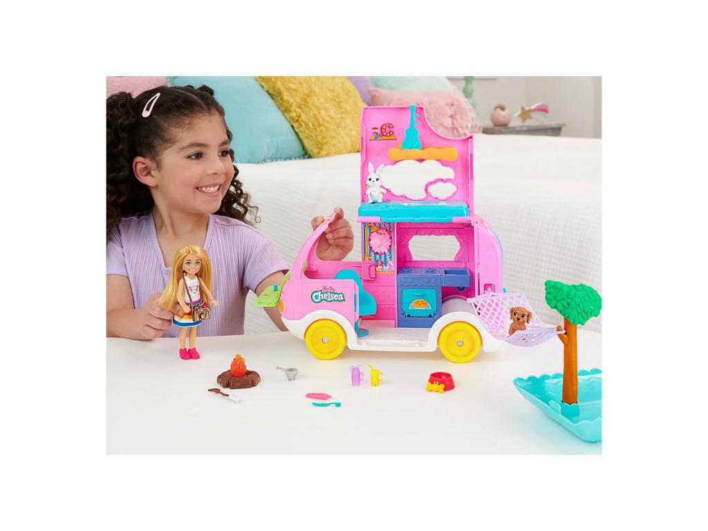Vágj bele egy kempinges kalandba Chelsea-vel és két állatbarátjával a Barbie Chelsea 2 az 1-ben Camper játékkészlettel! A lakókocsiban nem kevesebb, mint hat játszótér található, köztük egy konyha. Hajtsd le a műszerfalat, hogy felfedhesd az étkezőt, és emeld fel a tetőt, hogy felfedd a hálóhelyet Chelsea és állatbarátai számára mindennel, amire szükség van! Fordítsd meg a tetőt, és töltsd fel vízzel.