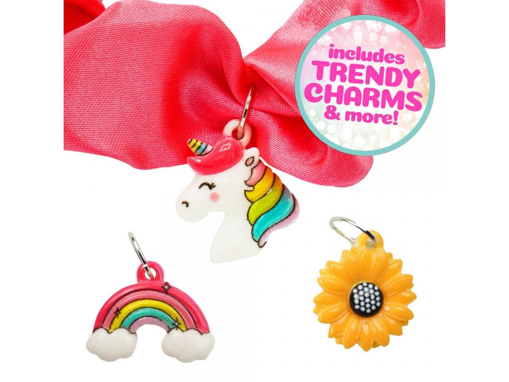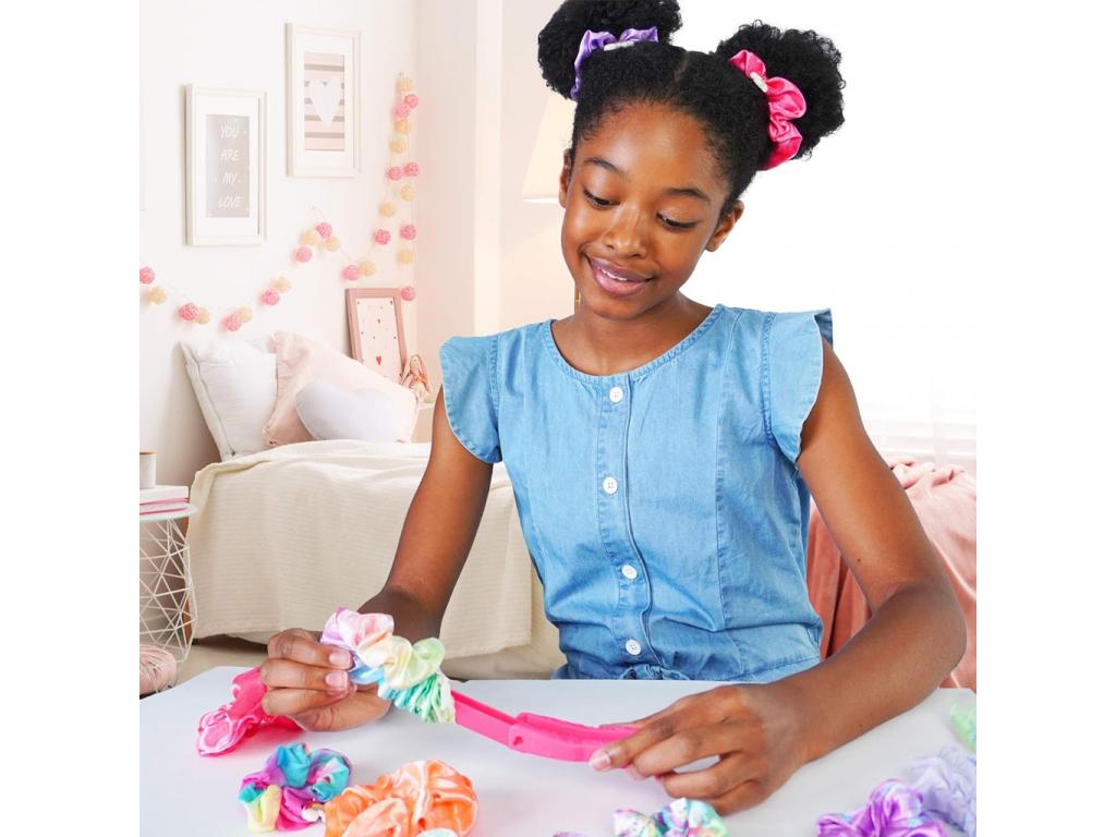 Ez a DIY készlet remek lehetőséget ad a gyermekek kreativitásának fejlesztésére és érvényesülésére, hiszen divatos kiegészítőket készíthetnek általa. A szett kifejezetten hajgumi készítésére készült, így rengeteg szatén szalag található benne, a hajgumi alapját képező gumi szalagok mellett.
