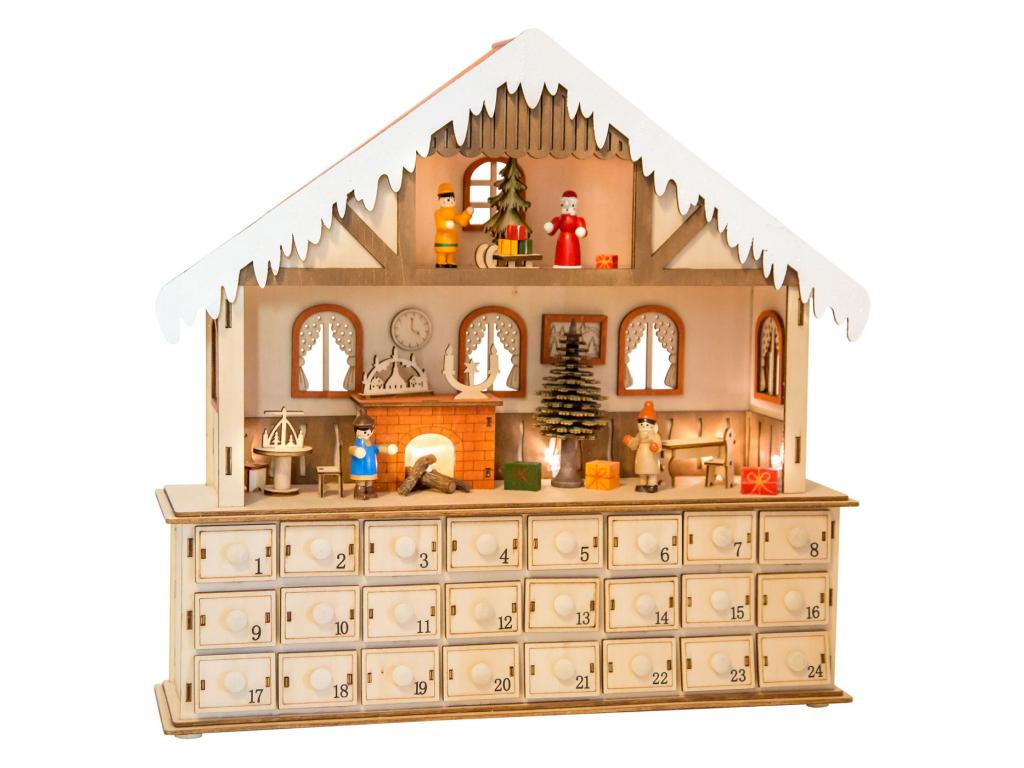 Ez a fából készült adventi naptár lenyűgöz a gyönyörűen megmunkált fával, amely a mellékelt világítással tud igazán ragyogni. A fiókokat apró ajándékokkal lehet megtölteni adventre. Ebben a nappaliban mindenki helyet szeretne foglalni!