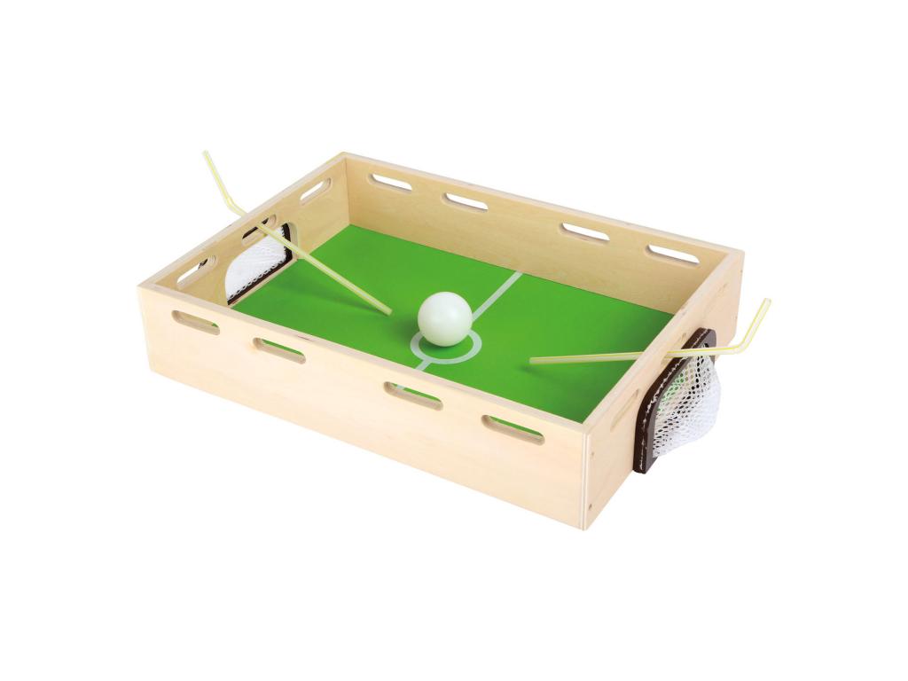 Ki tudja a labdát az ellenfél kapujába juttatni és "lefújni" egy támadást? A szívószálak helyes használatával, óvatos fújással kis bajnokságot nyerhetsz. Ez a strapabíró doboz nagyon jól vihető magunkkal, autóban, házban vagy kint - mindenki játszani akar vele! Dimension item: 36 x 24 x 7,5 cm