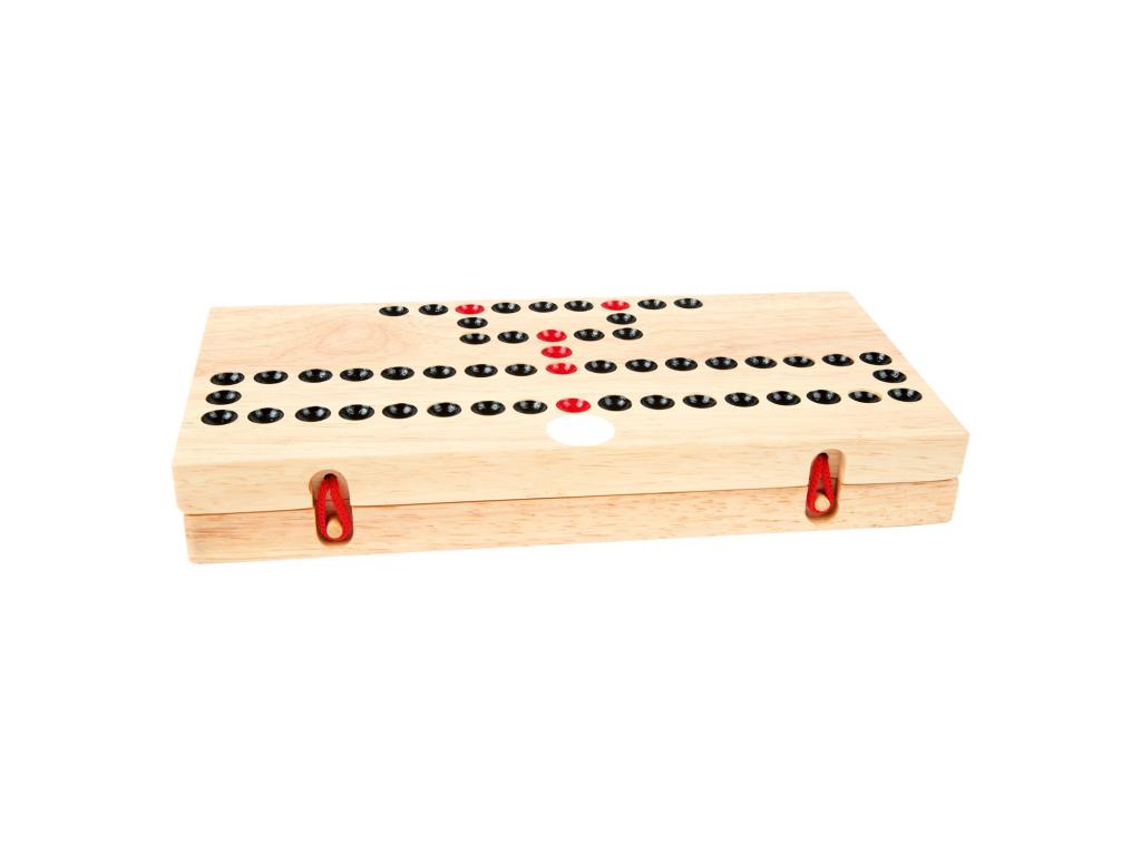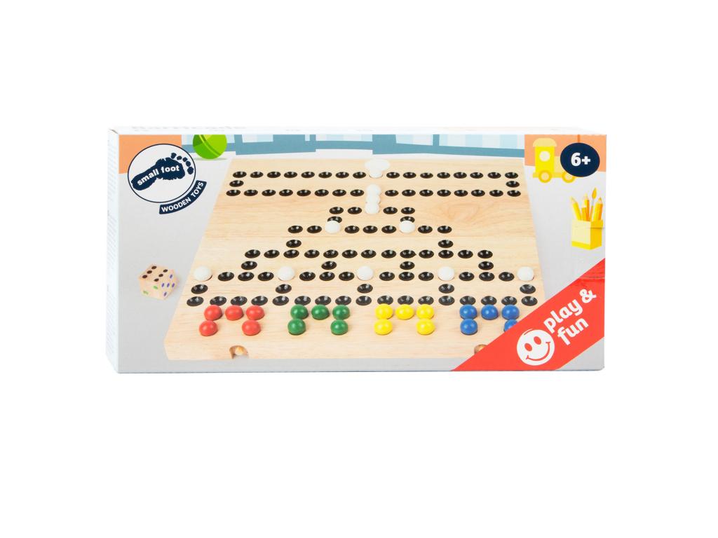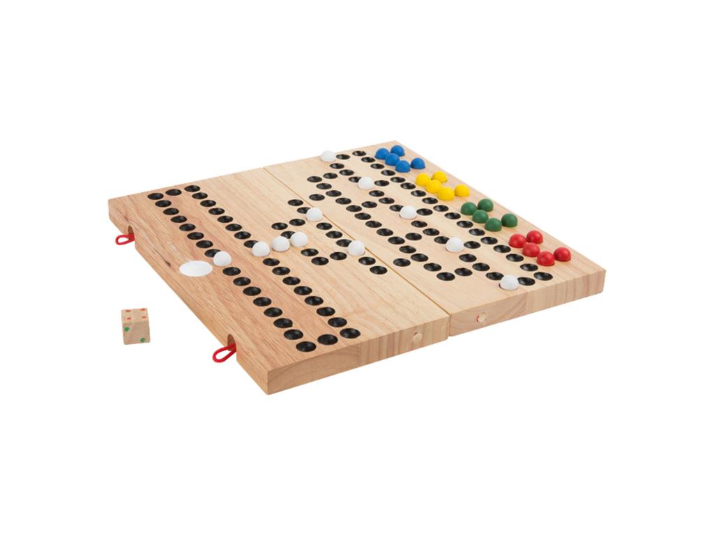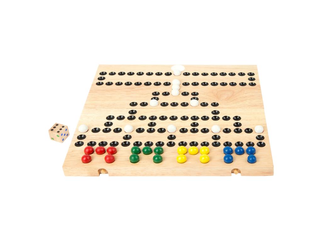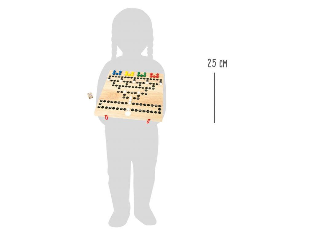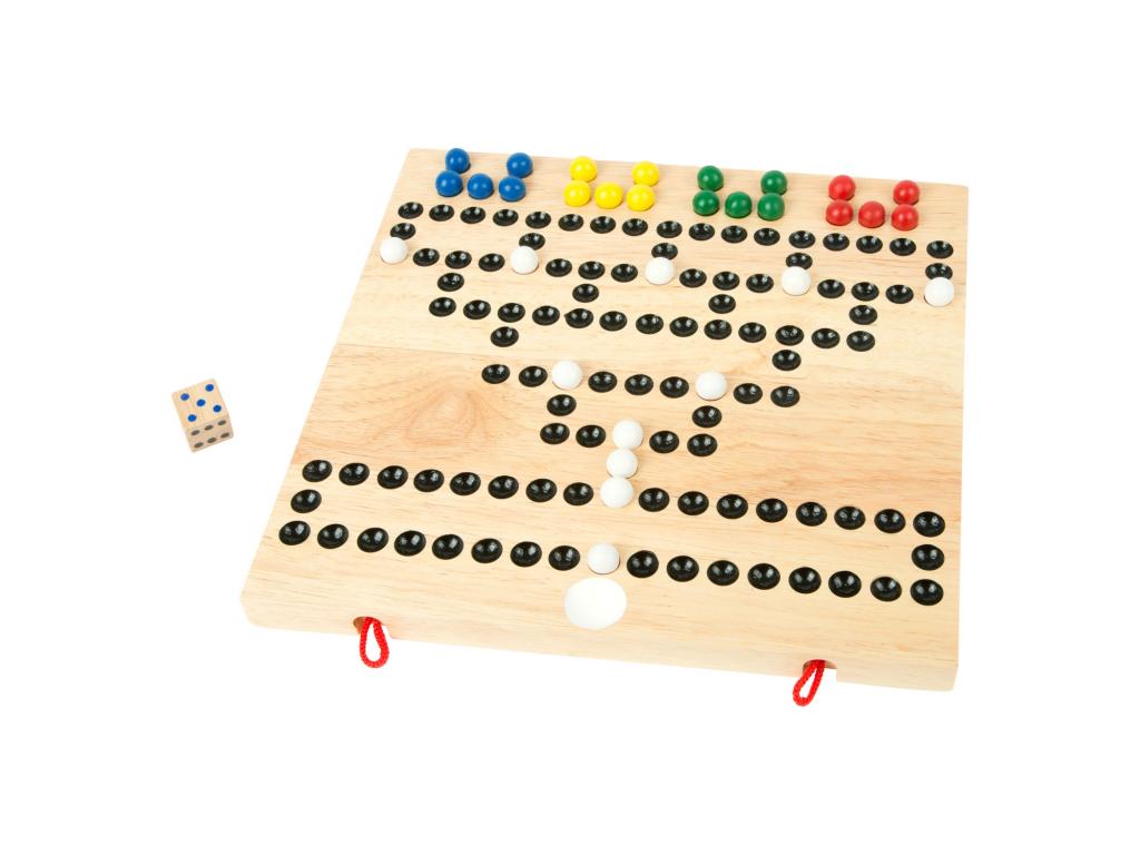 Szuper szórakozás kicsiknek és nagyoknak! A masszív fából készült izgalmas kockajáték gyönyörű színes golyókkal kettő-négy játékos számára alkalmas. Amikor nincs használatban, könnyen összecsukható. Így útközben is ideális. Kinek van tehetsége megnyerni ezt a játékot és elbarikádozni az utat a többi játékos előtt? Egy társasjáték-klasszikus, amely kicsik és nagyok körében egyaránt nagy népszerűségnek örvend. Méret: 25 x 25 x 2 cm, gömb 1 cm