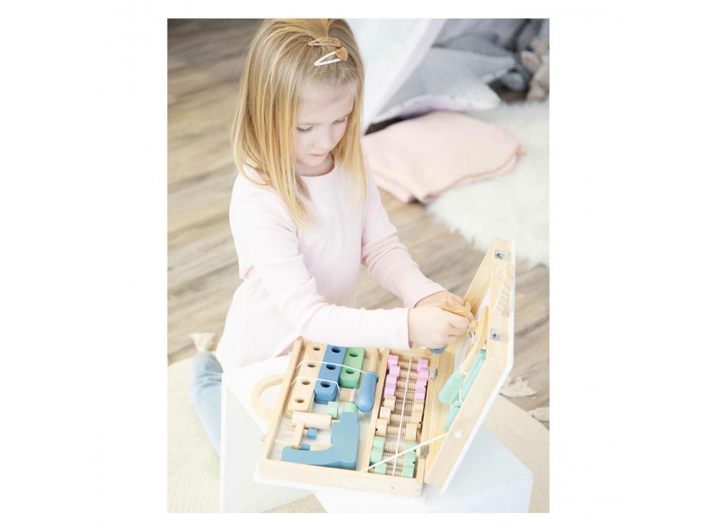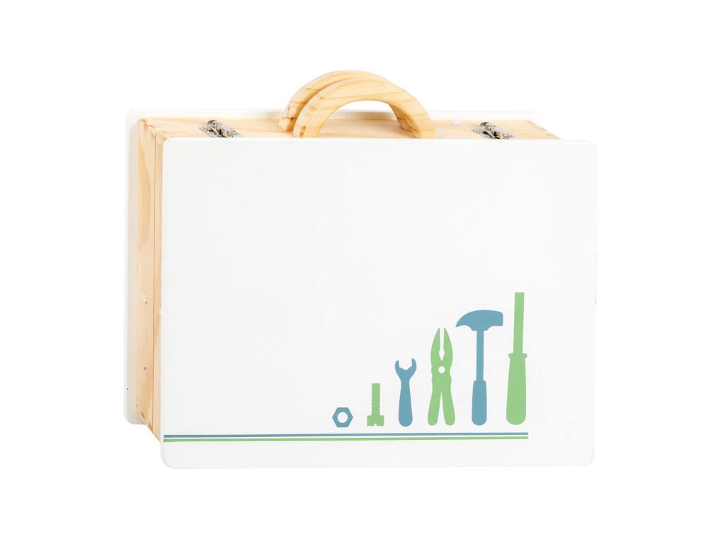 Most már tényleg elkezdődhetnek a barkácsolási projektek! Ezzel a skandináv dizájnú, fából készült szerszámosládával a fiatal kézművesek igazi profik lesznek. A részletgazdag kiegészítők, mint például a beépített vízmértékkel ellátott vonalzó és a mágnesek segítségével cserélhető tartozékokkal ellátott, praktikus akkus csavarhúzó minden kívánságukat valóra váltja! Számos tartozékot tartalmaz. Az 5 szerszámból, 1 fúrógépből, 3 tartozékból, 11 csavarból, 11 anyából és 12 perforációs csíkból álló tartozékok. A klipszes záróknak köszönhetően minden biztonságosan tárolható, a fa hordozófogantyúkkal pedig a fiúknak és lányoknak szánt szerszámosláda készen áll a következő barkácsolásra.