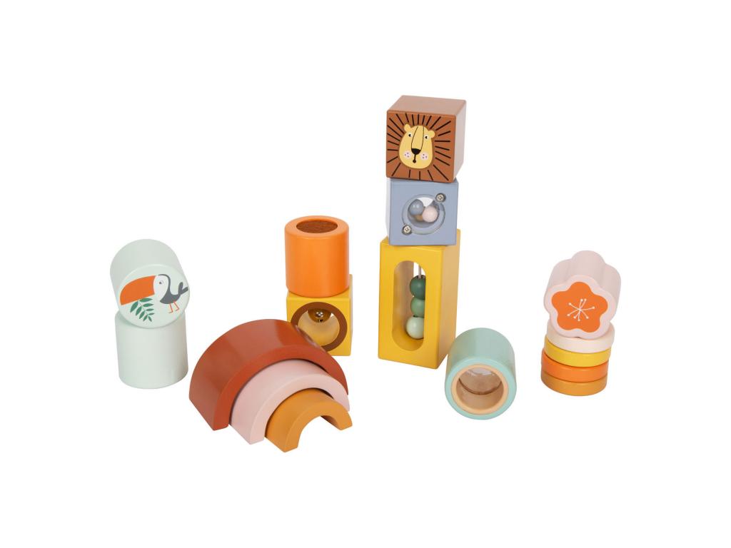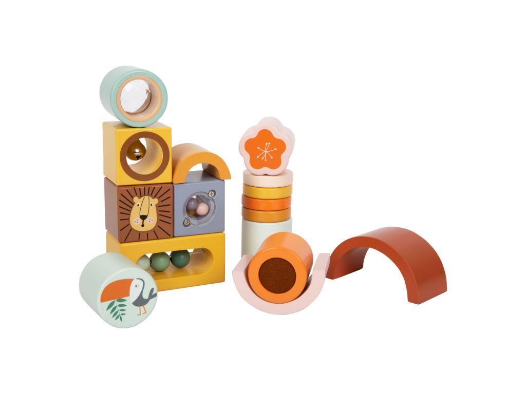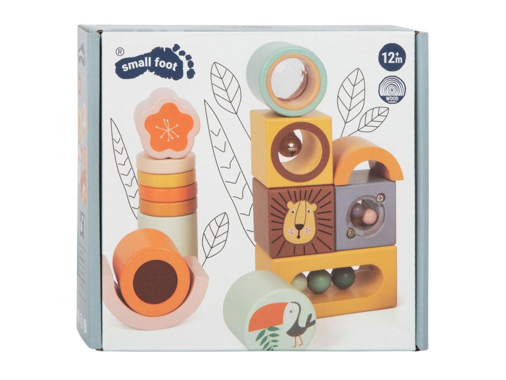 A felfedező "Safari" építőkockái klasszikus érzékszervi építőkockák a népszerű szafari megjelenésben, amelyek minden érzékszervet stimulálnak, valamint a motoros készségeket és a szem-kéz koordinációt edzik. Az építőkockák könnyen megfoghatók és egymásra rakhatók, így a fantáziának nincsenek határai, és már a legkisebbek is mindenféle alkotást és tornyot építhetnek.