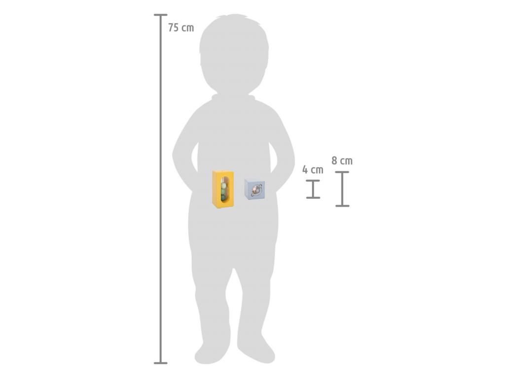 Méretek: blokkok kb. 4 x 4 x 8 cm; kockák 4 x 4 x 4 x 4 cm. Alkalmas 12 hónapos kortól.