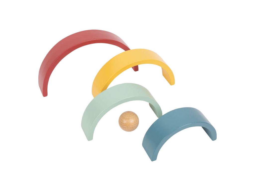 Fából készült szivárványos építőívek golyóval