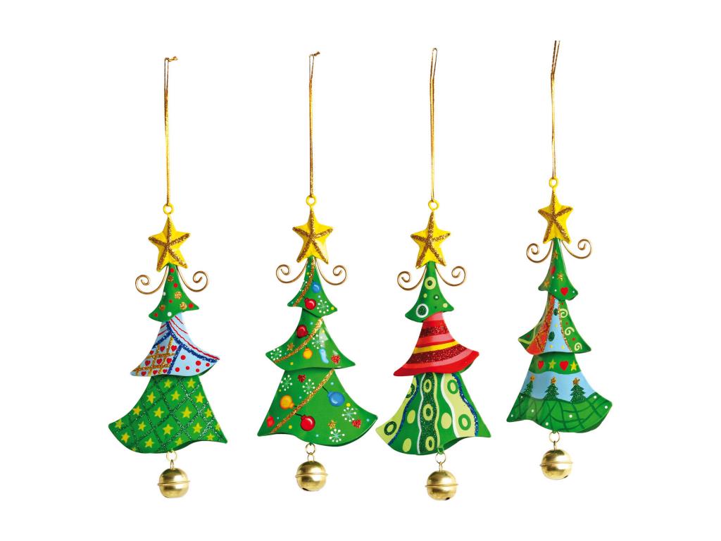 Ezek a vidáman megtervezett fenyőfák színes dekorációt jelentenek az ünnepek alatt. Csengettyűikkel igazi figyelemfelkeltők a karácsonyfán, ajtódíszítésen vagy kirakatban! Méret: 18 x 8 x 2 cm