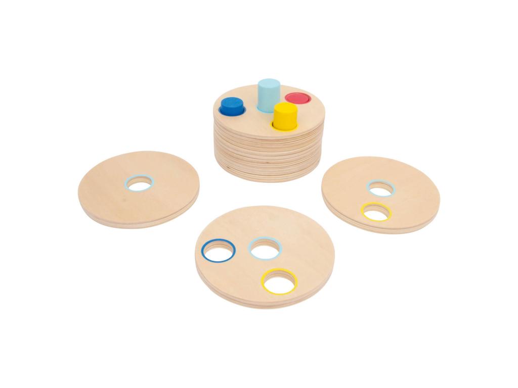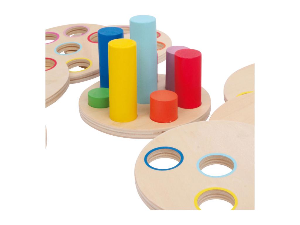 Olyan, mint egy puzzle, csak sokkal érdekesebb. A Logisteck azonnal inspirálja és edzi a finommotoros készségeket! A cél az, hogy a színes lyukakkal ellátott lemezeket a megfelelő színű oszlopokra helyezd. Ezt azonban könnyebb mondani, mint megtenni...! Mivel a rudak különböző hosszúságúak, és minden korongon mindig kisebb a rés, mint az előzőn, ez azt jelenti, hogy ezt a játékot csak egyféleképpen lehet megoldani!
