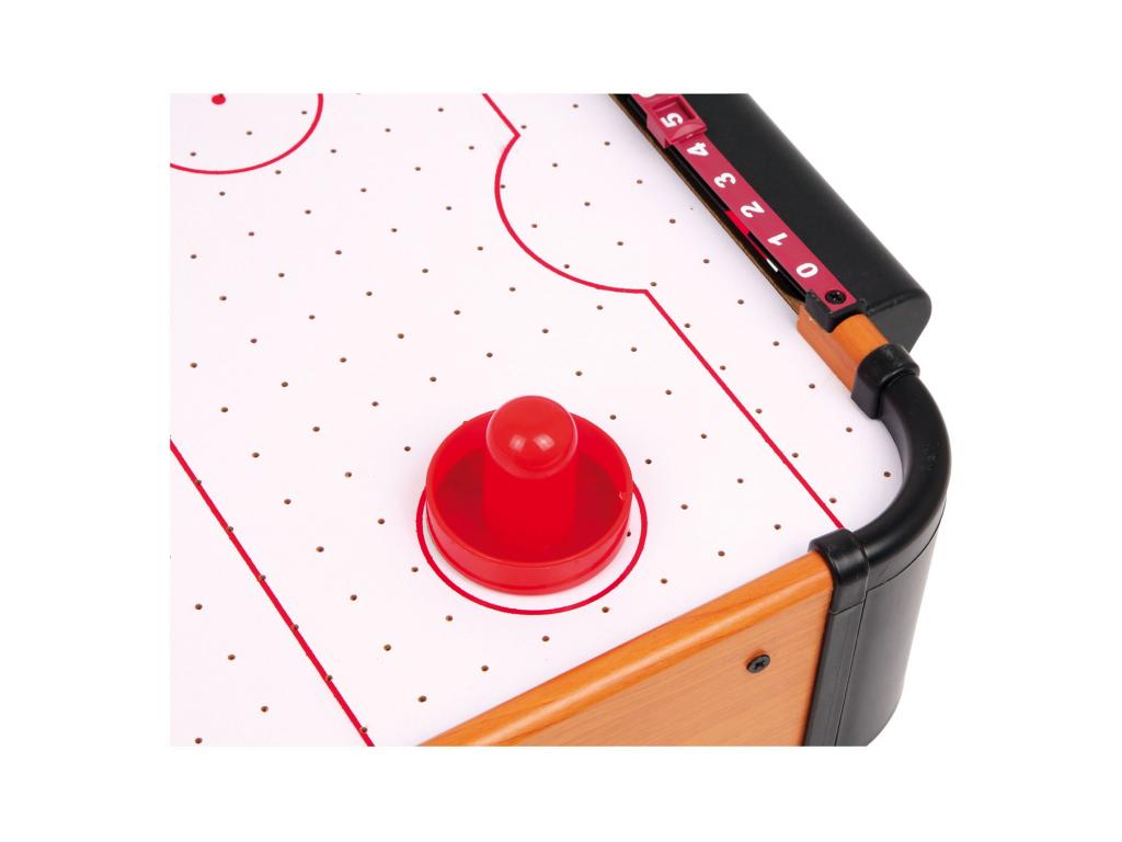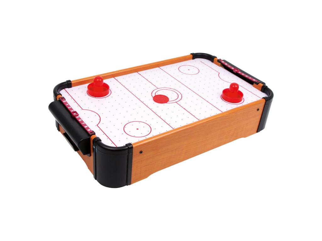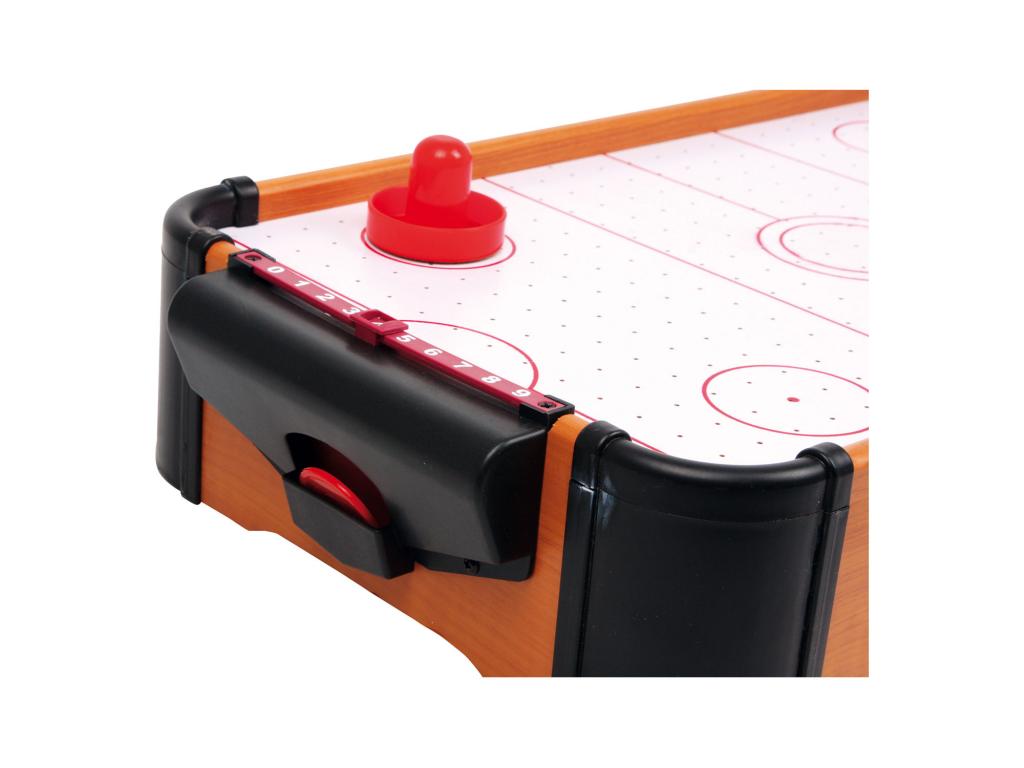 Ez a léghokiasztal garantálja a gyors játékot kis helyen! A nyolc AA elemmel működtetett ventilátor felhúzza a korongokat, így azok végigzúgnak a pályán! Ez a játék tökéletesen és finoman edzi a motorikus készségeket és a szem-kéz koordinációt. Az elemeket nem tartalmazza. Ez a léghokipálya bármilyen asztalon felépíthető, és a játék után helytakarékosan visszatehető a játékszekrénybe. Nagyszerű játék az izgalmas versenyzéshez kettesben!