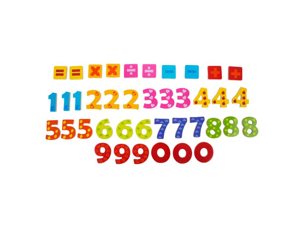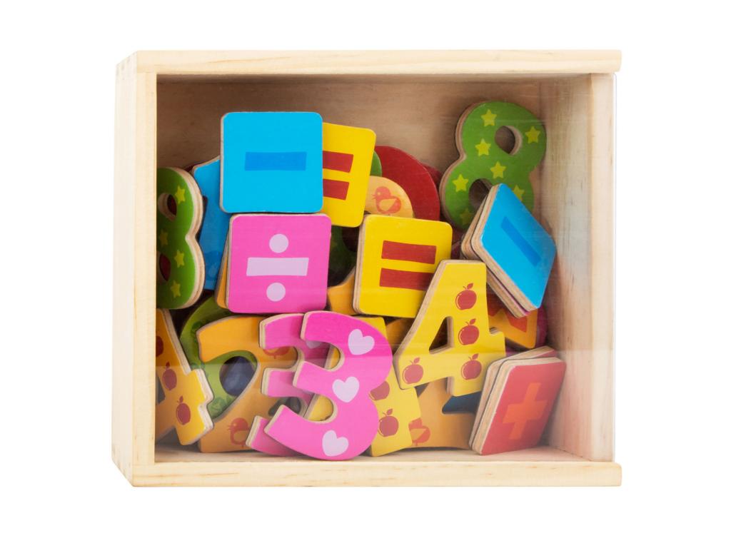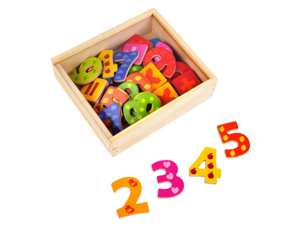 Számmágusoknak! Ez a készlet 40 darab, 0-tól 9-ig számozott darabot tartalmaz, színesre festett, mágneses, laminált faanyagon. A mágneses számok kényelmesen tárolhatók a mellékelt fadobozban. Így a gyerekek felállíthatják és megoldhatják saját első matematikai egyenleteiket. A számok bármilyen mágneses felületre felerősíthetők és rengeteg meglátást nyújtó játékot biztosítanak, amelyek segítik a számok megértését. Nagyszerű ajándékötlet tudáséhes gyerekeknek és kezdő matekrajongóknak!