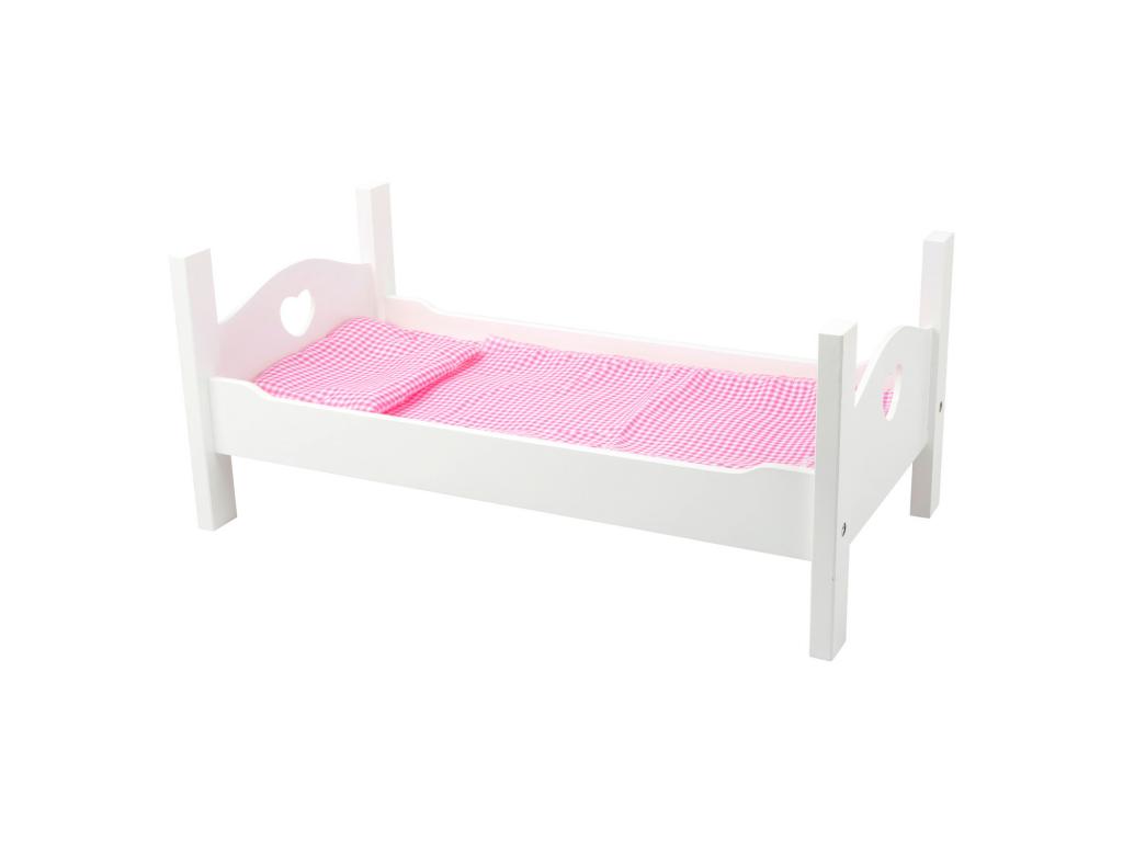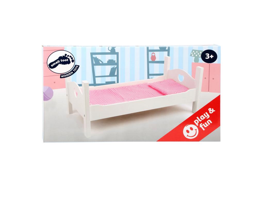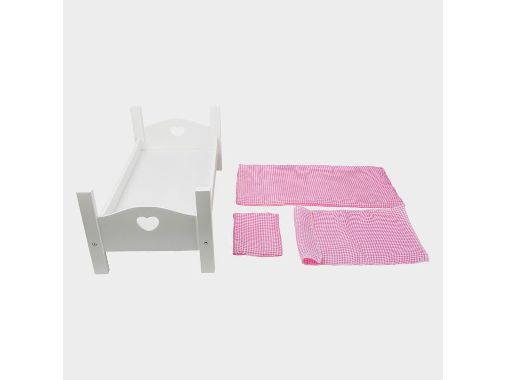 Fából készült babaágy fehér ágyneművel, 4 db