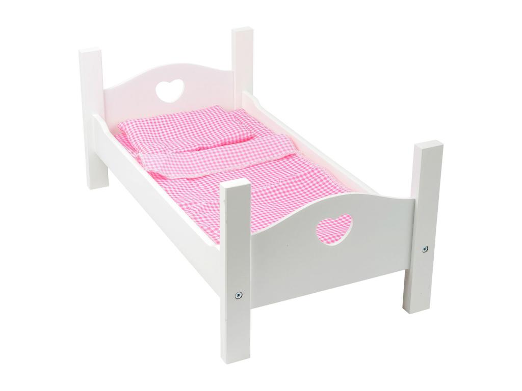 Ez a modern fa babaágy bájos szív motívumokkal teszi valóra a babák álmait. A fiatal babamamák és -papák játékosan tanulják meg a lefekvés folyamatát, miközben szerepjátékban eljátsszák fantáziájukat. A párnából, takaróból és lepedőből álló aranyos ágynemű biztosítja a kellemes éjszakai pihenést, a kiváló minőségű kivitelezés pedig a hosszan tartó szórakozást.