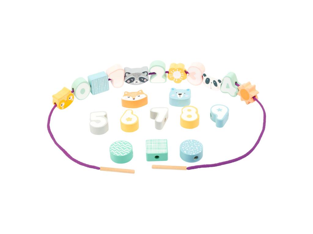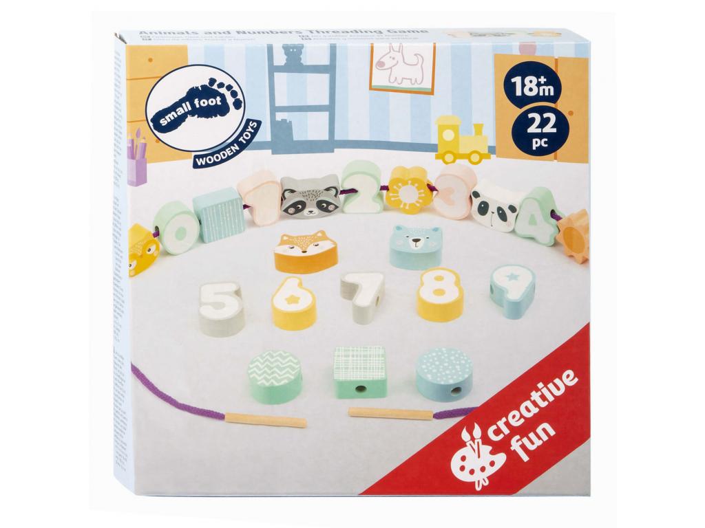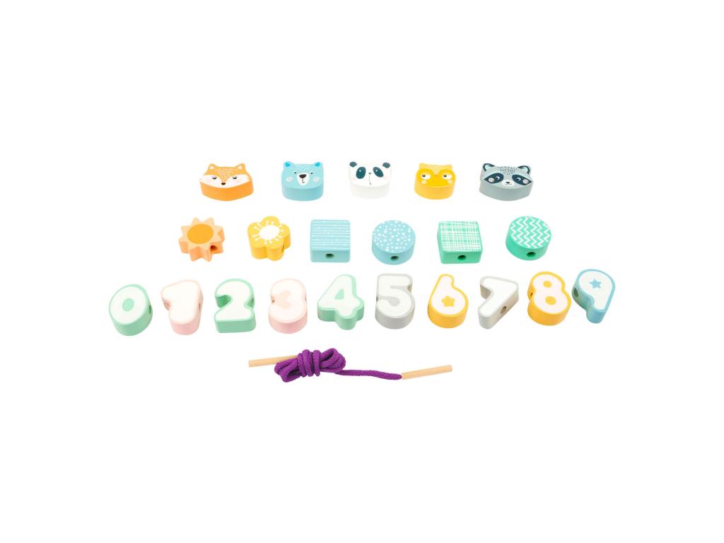 Fából készült felfűzhető játék- Állatok és számok, 22 db