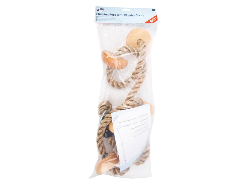 Fel és el! Ez a természetes megjelenésű mászókötél 5 helyen robusztus, tömör fából készült lépcsőfokokkal rendelkezik. Megkönnyíti a gyermekek számára a mászást és biztos fogást biztosít számukra.