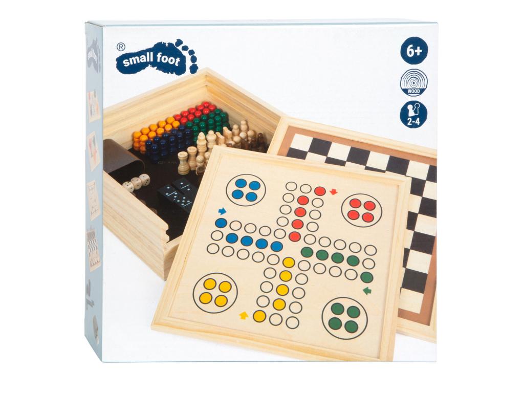 Ez a játékgyűjtemény az egész család számára nagyszerű, és tartalmazza az összes fontosabb klasszikus játékot és népszerű társasjátékot! Ez a játékgyűjtemény, amely stabil fa játéktáblákkal rendelkezik, mindent tartalmaz, ami egy nagyszerű játékesthez szükséges minden korosztály számára. Minden játék tartalma elfér a tömör fadobozban, amelynek alja filcből készült. Részletes használati leírást tartalmaz. Méret: 25 x 25 x 7,5 cm. Ajánlott 6 éves kortól.