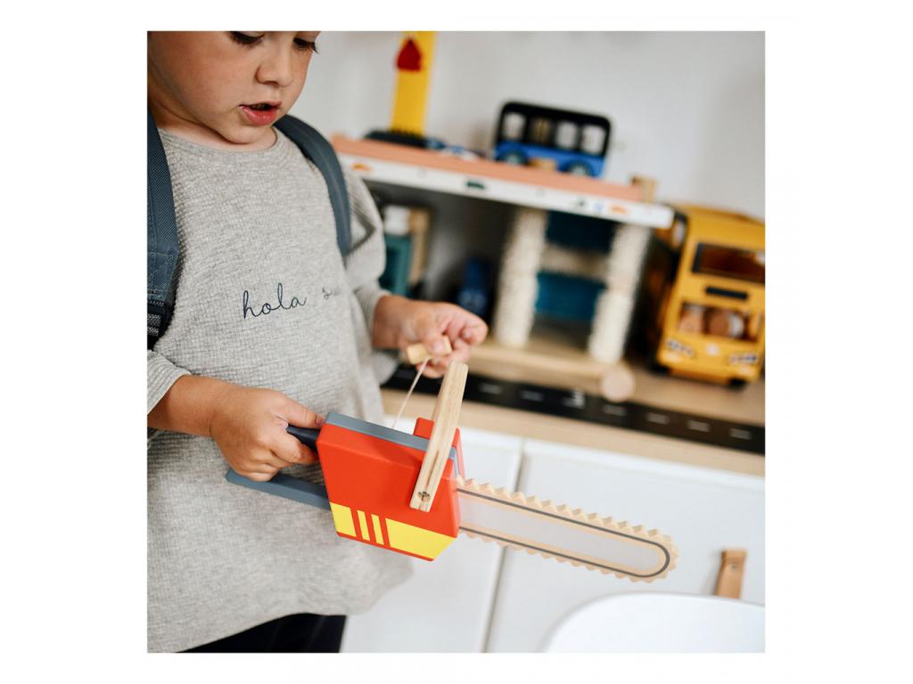 Láncfűrész a tűzoltó bevetéshez! Ezzel a fából készült, strapabíró, gyermekbarát játék láncfűrésszel semmi sem áll a valósághű szerepjáték útjába. A nagyméretű fogantyúk különösen könnyen megfoghatóak a gyermekkezek számára. Abszolút csúcspont a hanggal és rezgéssel visszahúzódó indítózsinór! A gyerekek imádnak szerepjátékot játszani a mindennapok hőseiként és hősnőiként!