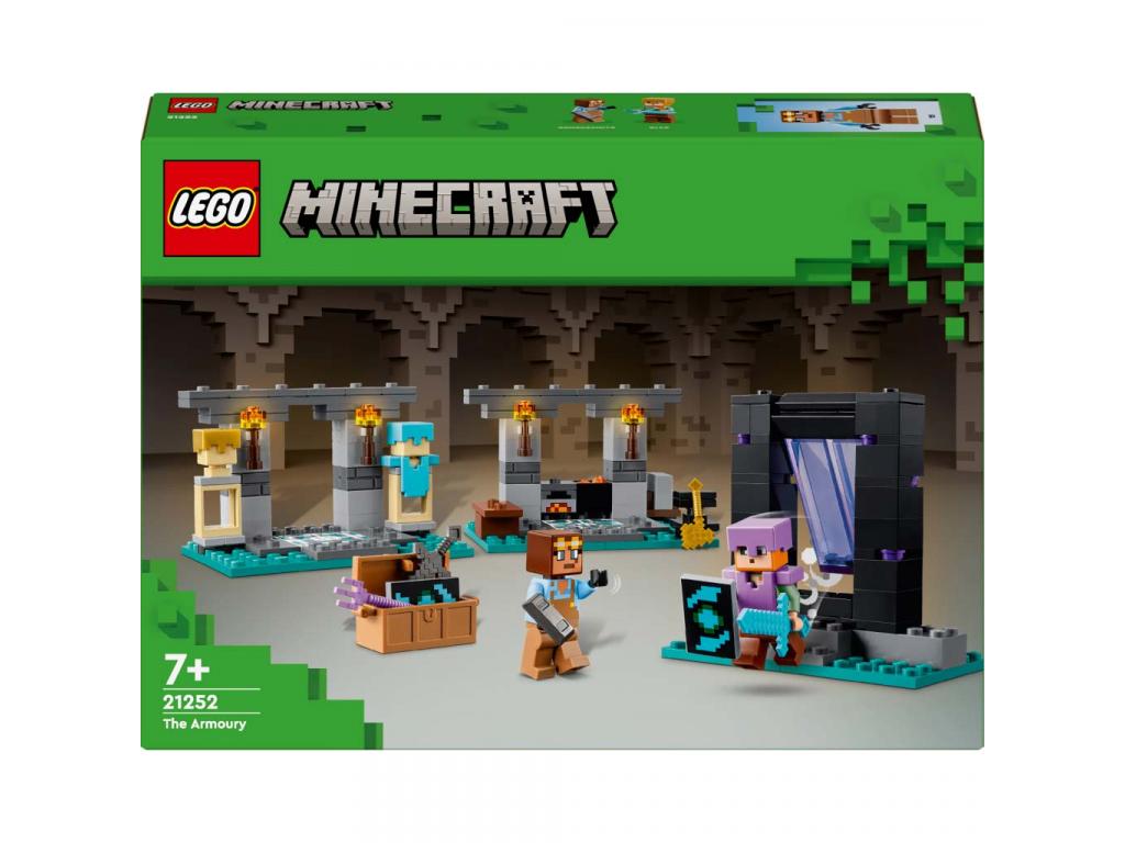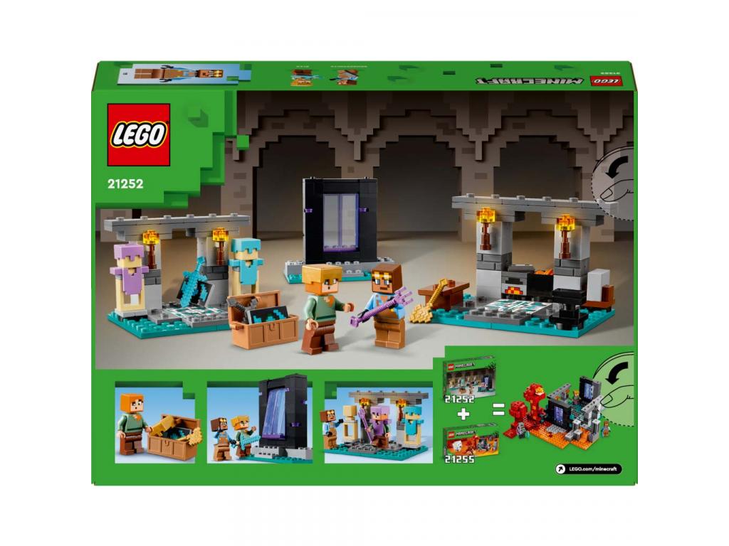 A gyerekeknek készült megépíthető gamerjáték 2 ismerős figurát rejt: a Minecraft akcióhős Alexet a pajzsával és a gyémántkardjával, és a buzgó páncélkovácsot. 3 helyszín vár felfedezésre: a munkaterület üllővel, kohóval, köszörűkővel és lávával töltött üsttel; a fegyvereket bemutató terem a ládával, amelyben arany fejszét, mágikus szigonyt, alvilágérc kardot, pajzsot és sok más Minecraft eszközt találsz; és az Alvilág kapu a lengőajtókkal, amely egy új kaland felé vezeti a játékosokat. Ez a Minecraft kalandjáték egy szerepjátékra alkalmas kiegészítő szett is, amelyet könnyen lehet kombinálni más LEGO Minecraft készletekkel, főként a Csapda Az Alvilág kapunál szettel (21255), amely külön kapható.