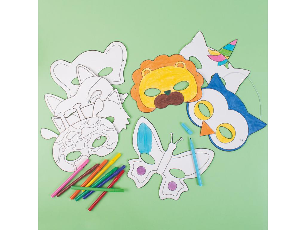 A szett tartalmaz 8 különböző típusú maszkot, így mindenki megtalálhatja a kedvenc állatát. Engedd szabadjára a fantáziádat és színezd valósághűen, vagy merülj el a kreativitásban és teremts új és egyedi karaktereket! Minden maszkhoz 530 mm x 1 mm-es rugalmas zsinór tartozik, hogy könnyen és kényelmesen rögzíthessék az arcra.