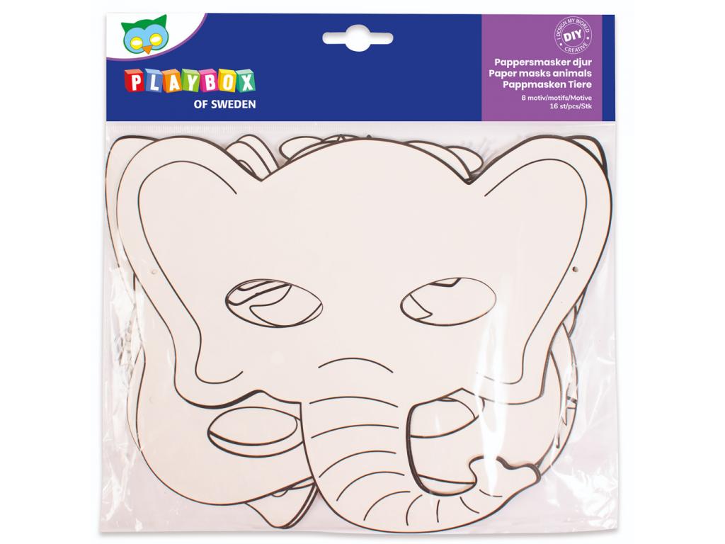A PlayBox Állatos Papírmaszk Szettje minőségi 210g/m2-es tömör kartonból készült, ami tartósságot és stabilitást biztosít. A fehér színű maszkok ideális alapot nyújtanak a festéshez vagy díszítéshez.