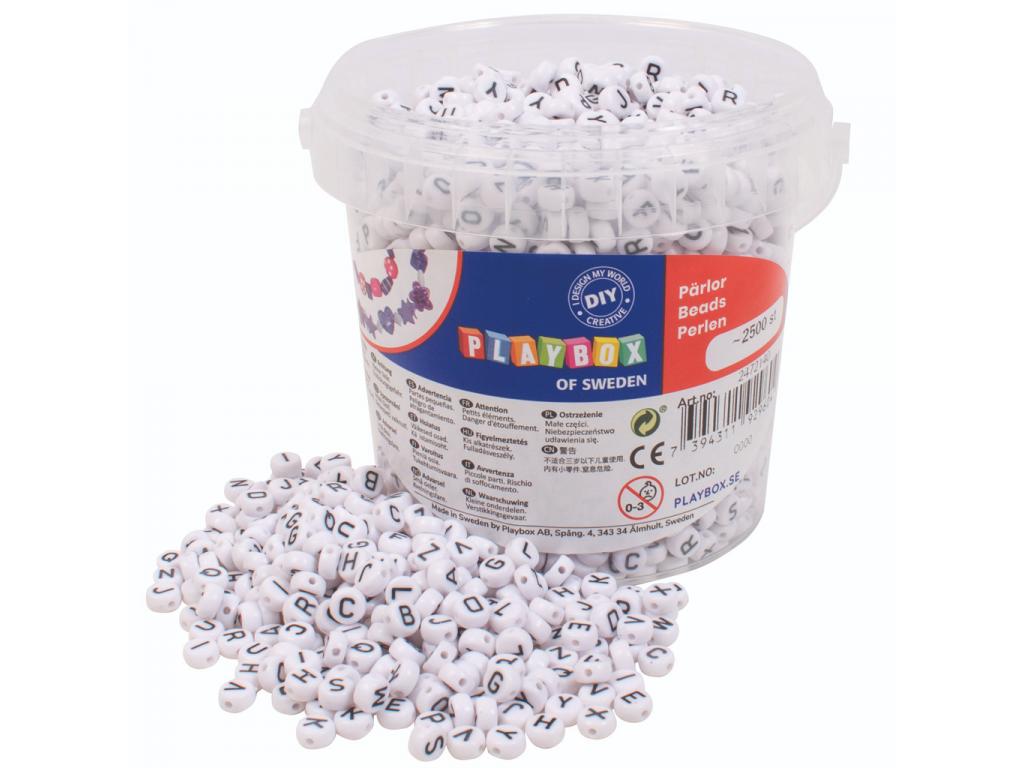 A betűgyöngyök készletét azoknak ajánljuk, akik szeretnék saját kreatív ékszereiket készíteni, vagy akár tanulni az írást és az olvasást játékos formában. A készlet 2500 darabot tartalmaz fehér gyöngyökkel, melyeken fekete betűk vannak.