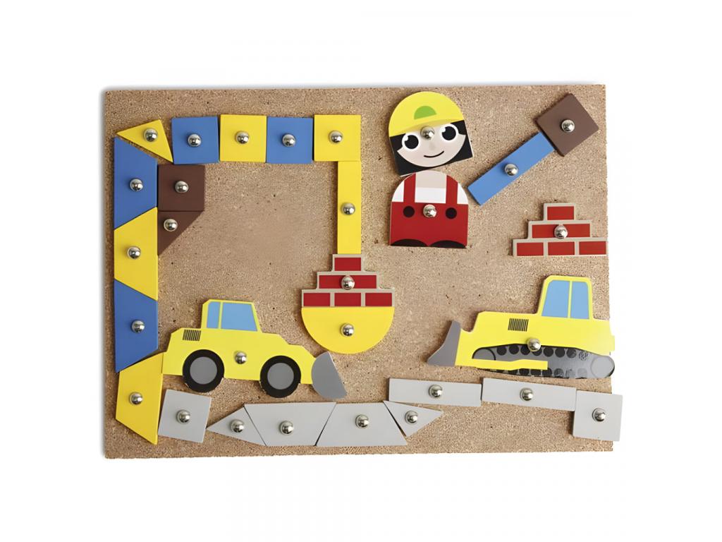 Ez a lenyűgöző parafatábla készlet egy izgalmas és kreatív lehetőséget kínál a gyermekeknek. A színes motívumokkal rendelkező tábla lehetővé teszi, hogy a gyerekek egyedi építkezési jeleneteket hozzanak létre. A mellékelt példák alapján követhetik az útmutatást, vagy saját fantáziájukat szabadon kibontakoztathatják.