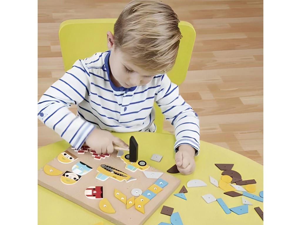 Ez a parafatábla készlet lehetővé teszi a gyermekek számára, hogy különféle formákat és jeleneteket hozzanak létre a kalapács és a szegek segítségével, így egyedi és szórakoztató alkotásokat készíthetnek. Ezáltal a játék nemcsak szórakoztató, hanem tanulásra és kreatív kifejezésre ösztönöz.