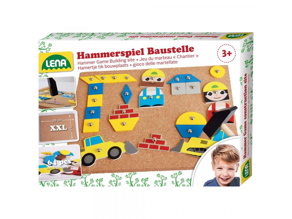 LENA: Kalapálós parafatábla játékszett - Építkezés