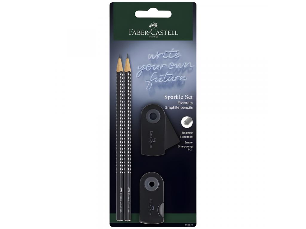 Faber-Castell: GRIP Sparkle 4 db-os fekete grafitceruza szett radírral és hegyezovel