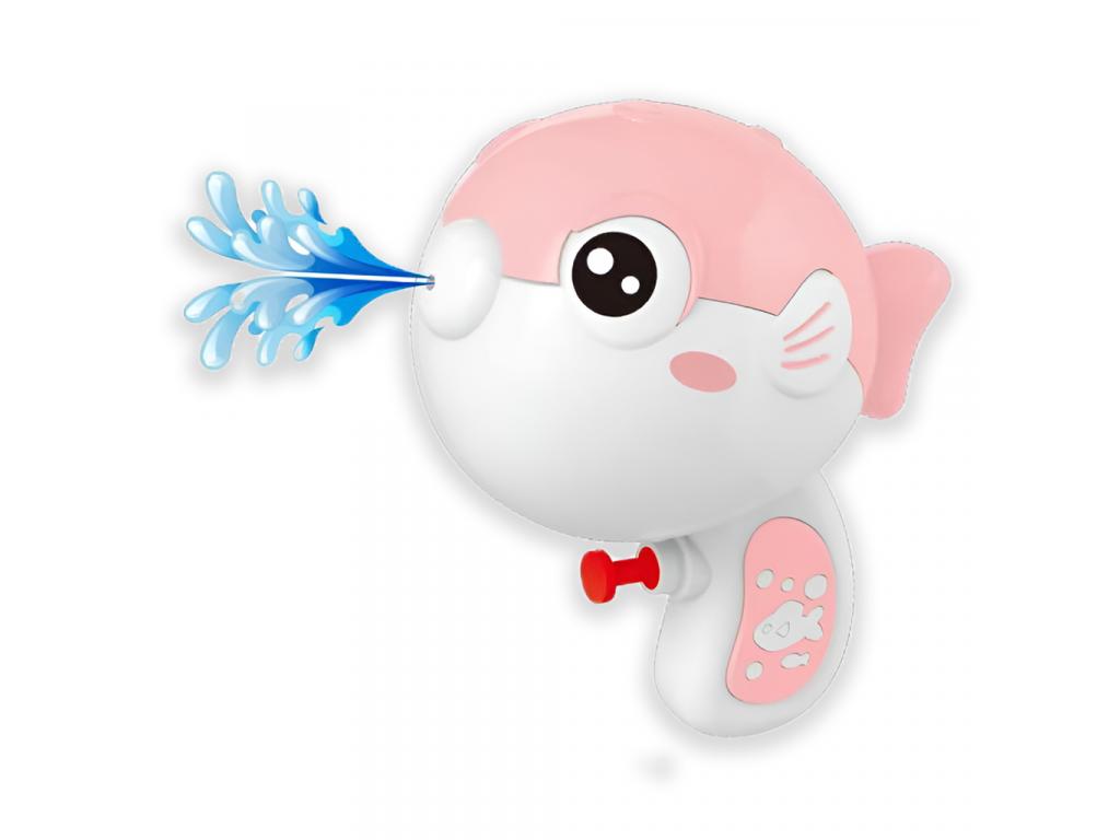 A 13 cm hosszú, rózsaszín pufi halas vízipisztoly egy vidám és praktikus játék, amely ideális választás lehet a legkisebbek számára. A pisztoly formája egy aranyos halat idéz meg, amelynek a pufi teste színes és vonzó megjelenést kölcsönöz neki.