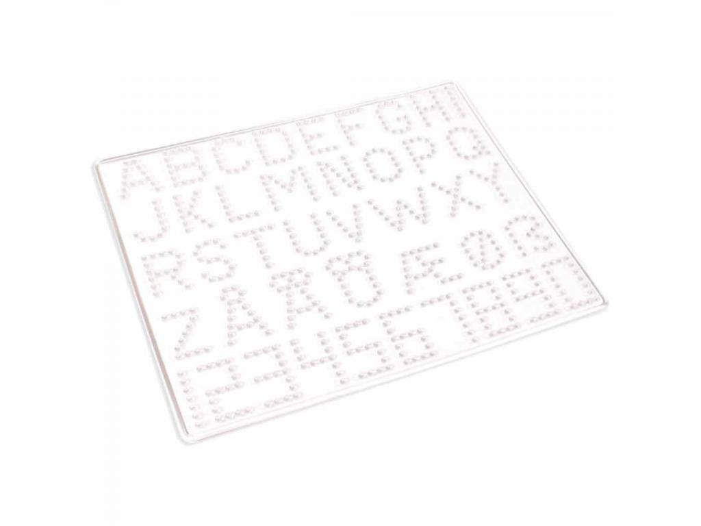 A csomag tartalmaz 3 különböző tematikájú alaplapot: betűk, számok és különböző szimbólumok, amelyekkel számos kreatív projekt megvalósítható. Minden tábla pontosan meghatározott kialakítású, ami segíti a gyerekeket a gyöngyök helyes elhelyezésében.
