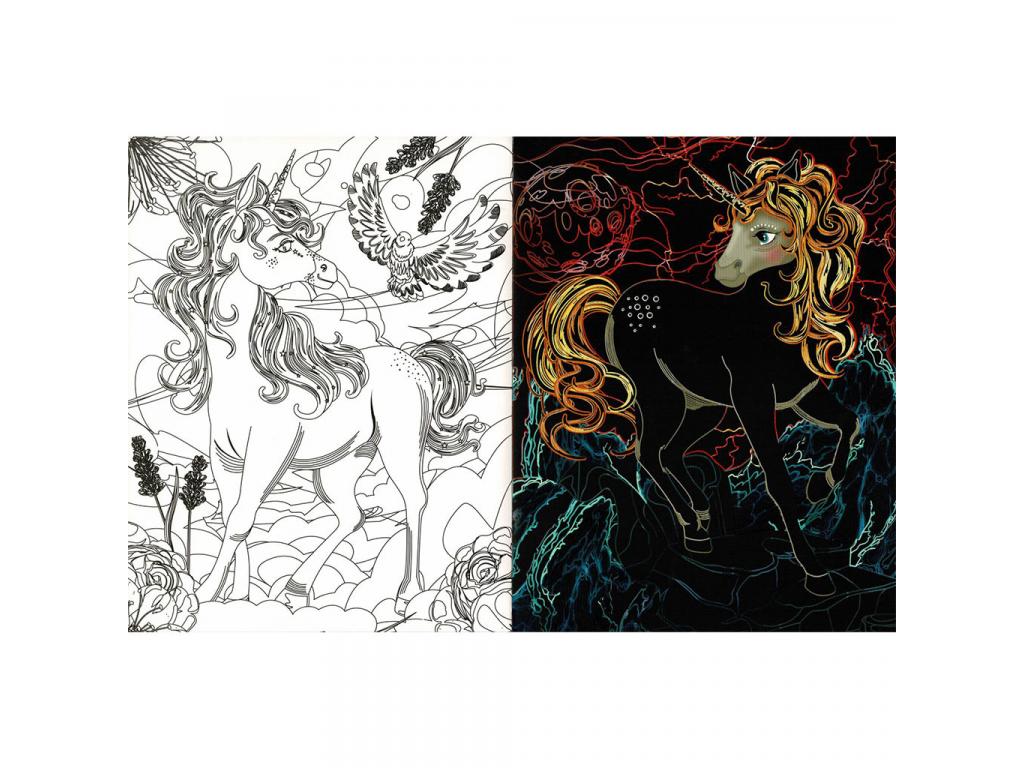 Merülj el az Unikornisok Rejtőzködő Világában ezzel a különleges kifestőfüzettel! Használd a mellékelt kaparópálcát, hogy eltávolítsd a fekete réteget, és láss csodát, amint színes képek bontakoznak ki a lapokon. A varázslatos élmény mellett színezőoldalain magad is alkothatsz, majd kiemelheted a kész művet, hogy megoszd barátaiddal.