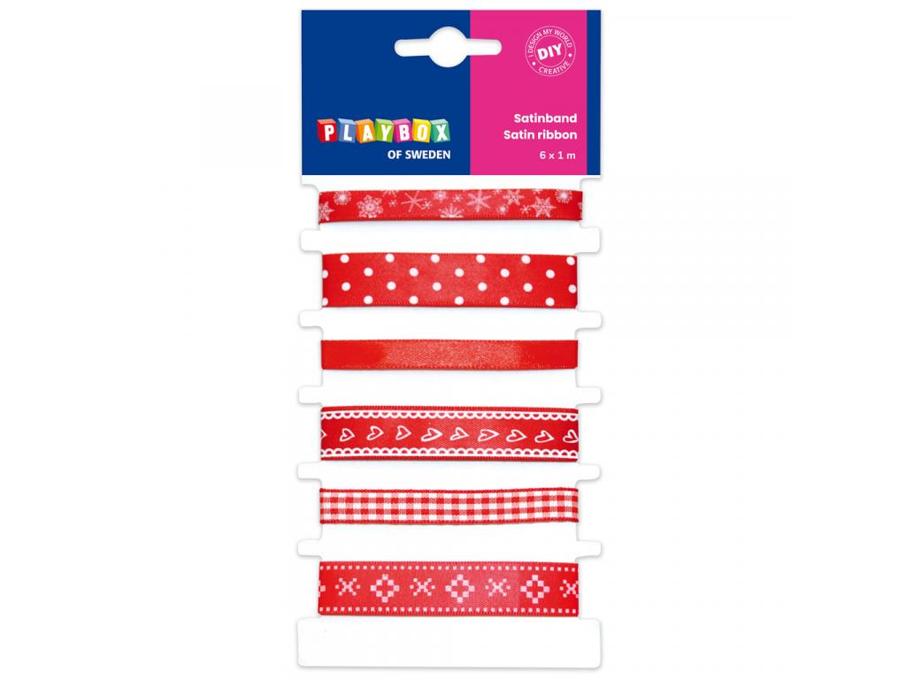 A PlayBox: Piros szatén szalag szett többféle mintával 6 db-os szett 1m leírása:
