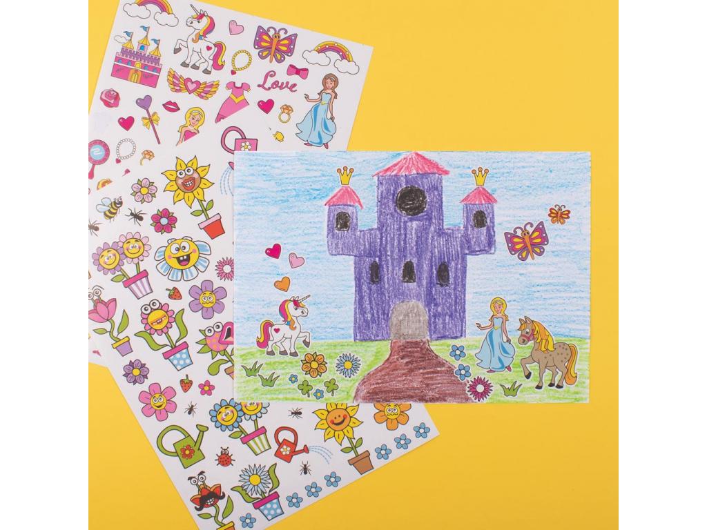 A hercegnős és lányos matrica szett egy varázslatos választás minden kis lány számára, aki szereti az álmokat, hercegnőket és unikornisokat. Ez a csomag nyolc lapot tartalmaz, mindegyik lap 500 különböző motívumú matricát kínál, amelyek hercegnőket, unikornisokat, virágokat és pillangókat ábrázolnak.