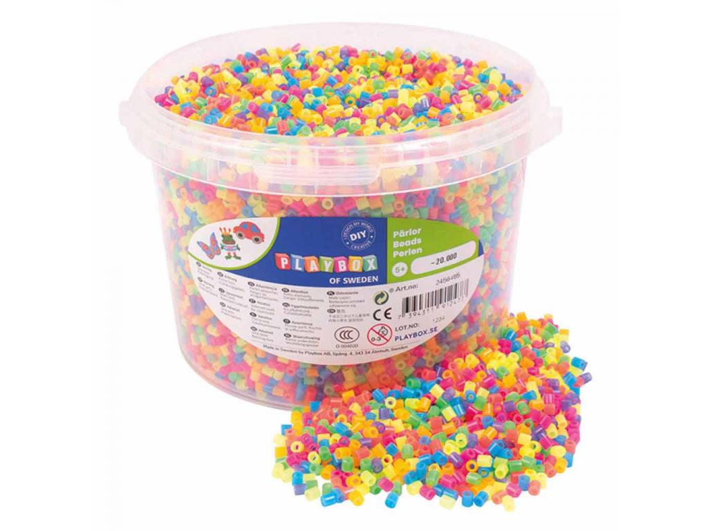 PlayBox: 5mm-es MIDI neon színu vasalható gyöngyök vödörben 20.000 db-os csomag
